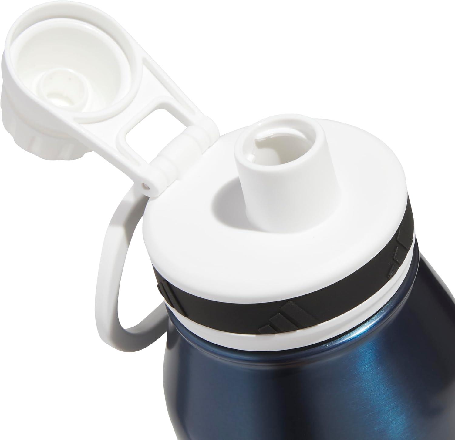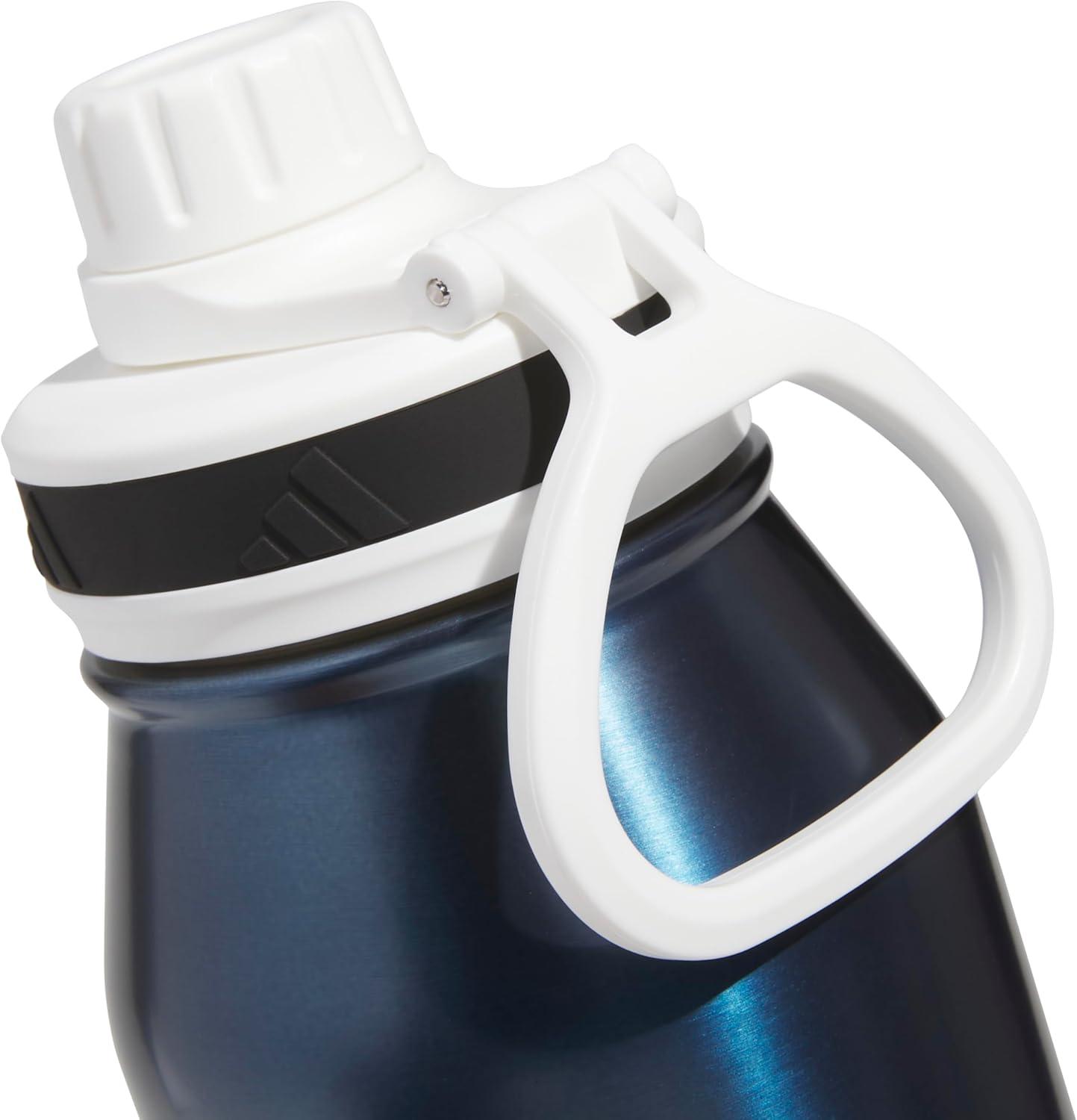 adidas 1 Liter (32 oz) Metal Water Bottle, Hot/Cold Double-Walled Insulated 18/8 Stainless Steel, Focus Olive Green/Black, 32 Ounces(Mineral Blue/White/Black)