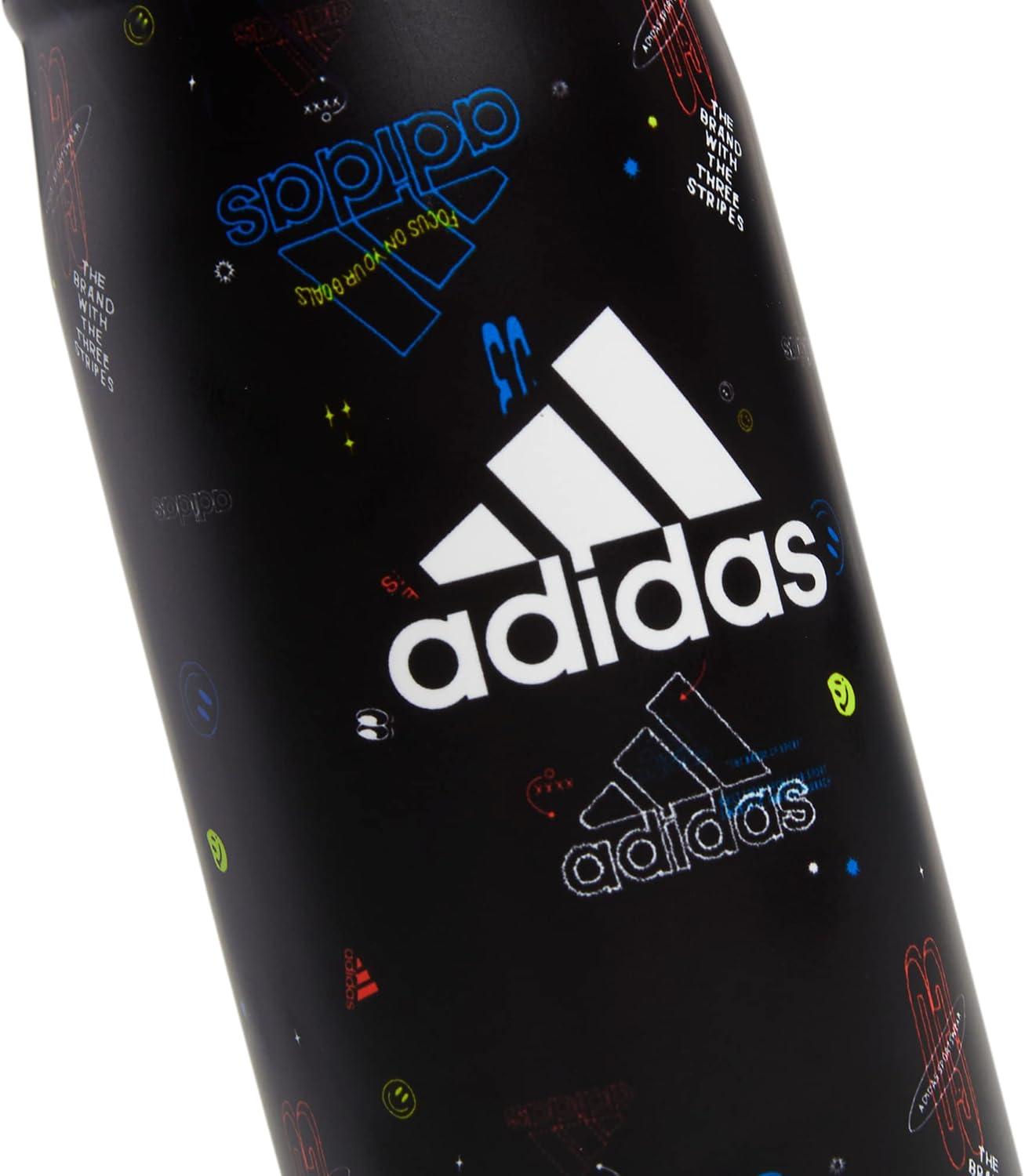 adidas 20 oz Stainless Steel Water Bottle, Insulated Double-Walled 18/8 Metal, Men, Women, Girls and Boys(Icon Brand Love Black/Black/White)