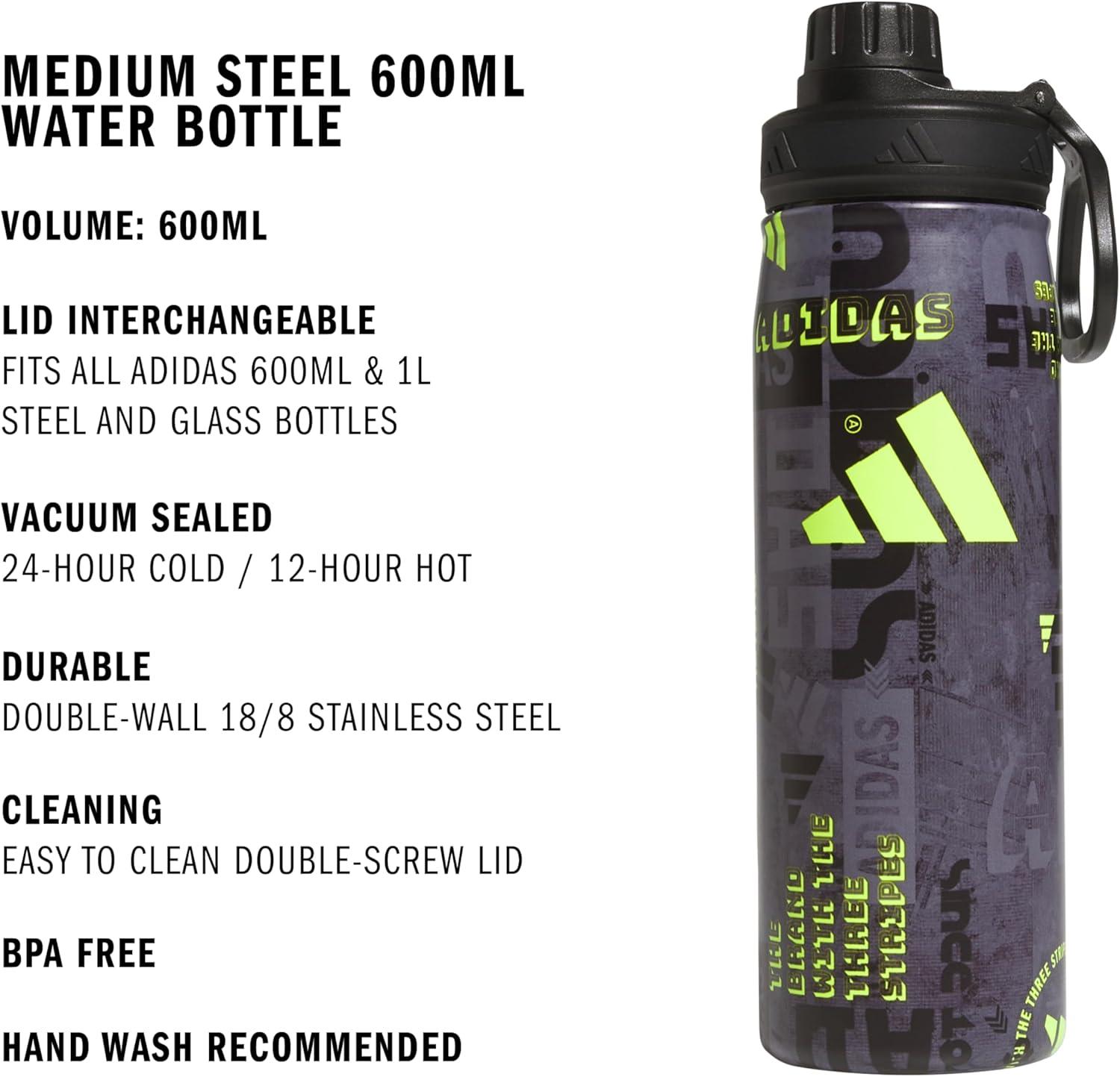 Sip water at the gym or coffee on the train with this adidas stainless water bottle. This black water bottle features a double-wall design that keeps hot liquids hot and cold liquids cold for hours. Its 600-milliliter capacity makes it a practical choice for those looking for a travel water bottle. Additionally, this BPA free water bottle works well as an insulated coffee mug, suitable for travel coffee mugs users who need thermal cups for hot and cold drinks.