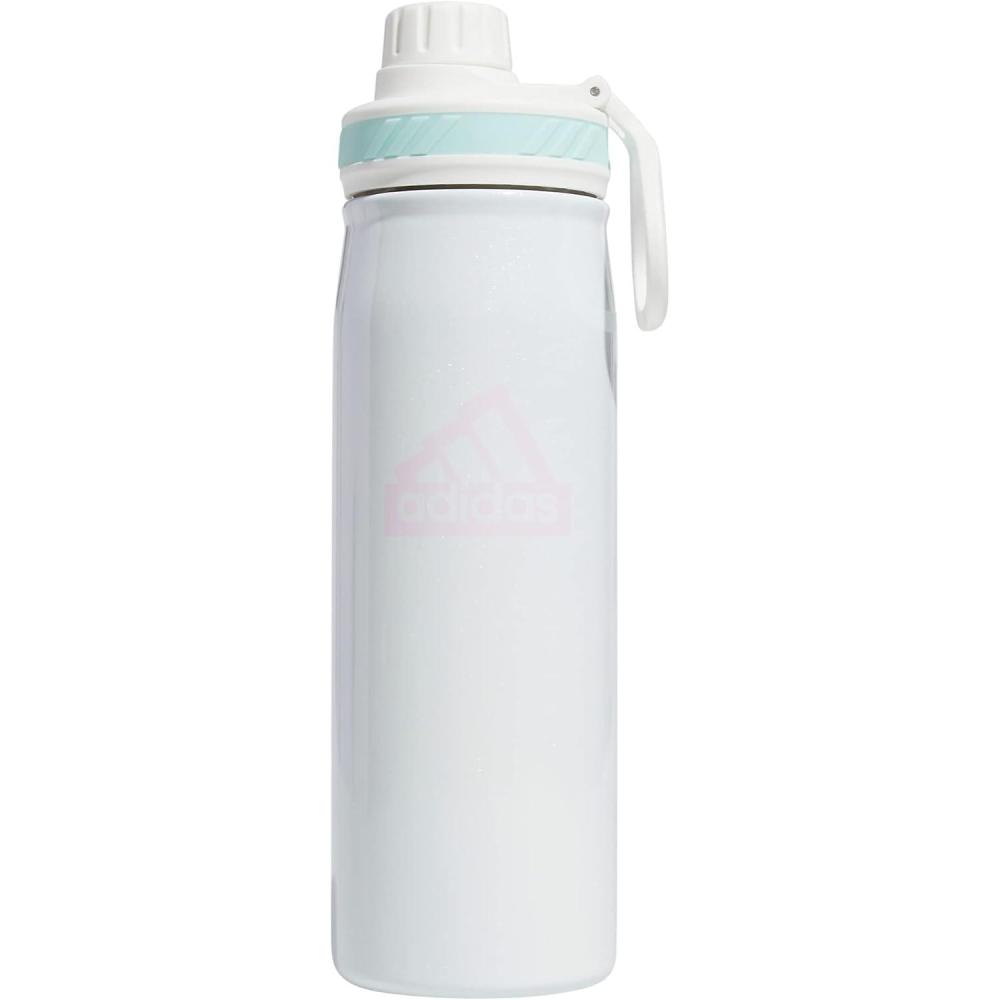 adidas 20 oz Stainless Steel Water Bottle, Insulated Double-Walled 18/8 Metal, Men, Women, Girls and Boys(White/Orchid Fusion Purple/Semi Flash Aqua Blue)