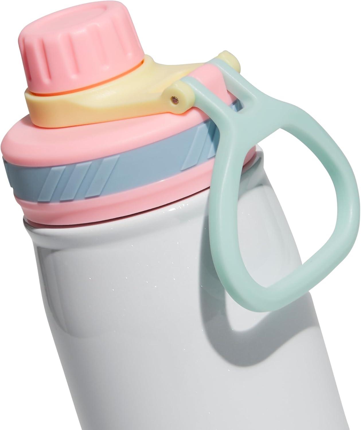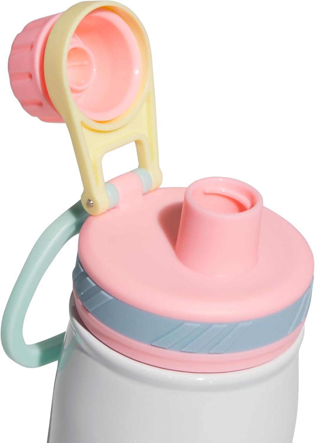 adidas 20 oz Stainless Steel Water Bottle, Insulated Double-Walled 18/8 Metal, Men, Women, Girls and Boys(White/Pink Spark/Clear Sky Blue)