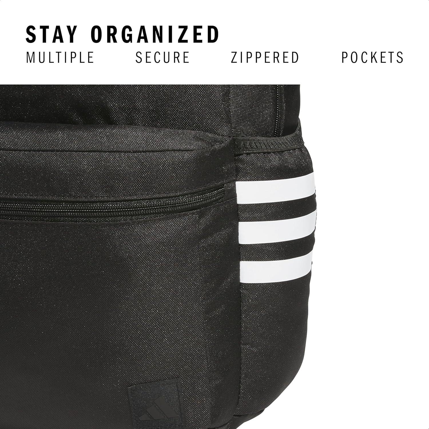 adidas 3-Stripe Classic Backpack for Men and Women, Bag with Laptop Sleeve, Meadow Floral Wonder White/Wonder White/5.0, One Size(Black/5.0)