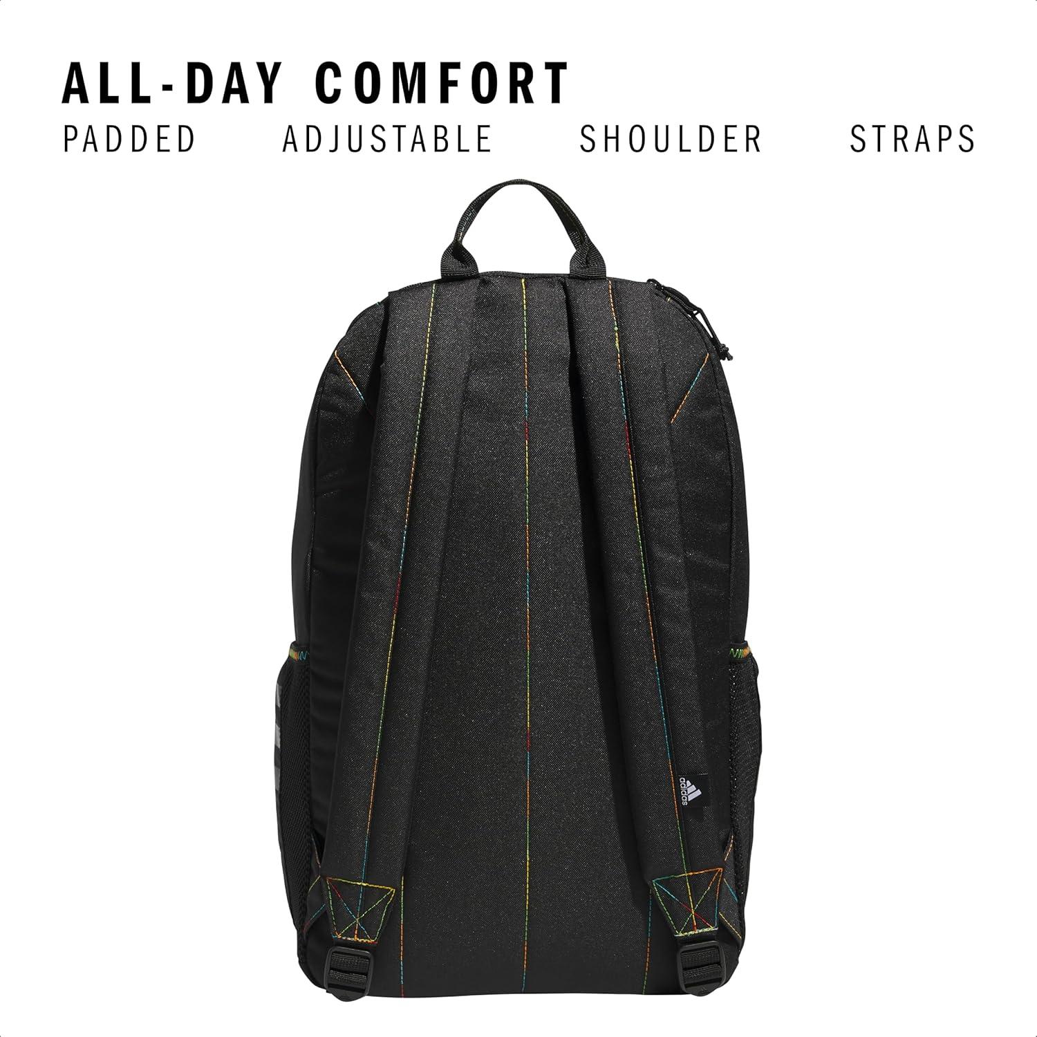 adidas 3-Stripe Classic Backpack for Men and Women, Bag with Laptop Sleeve, Meadow Floral Wonder White/Wonder White/5.0, One Size(Black/Pulse Magenta Pink /Rainbow/5.0)