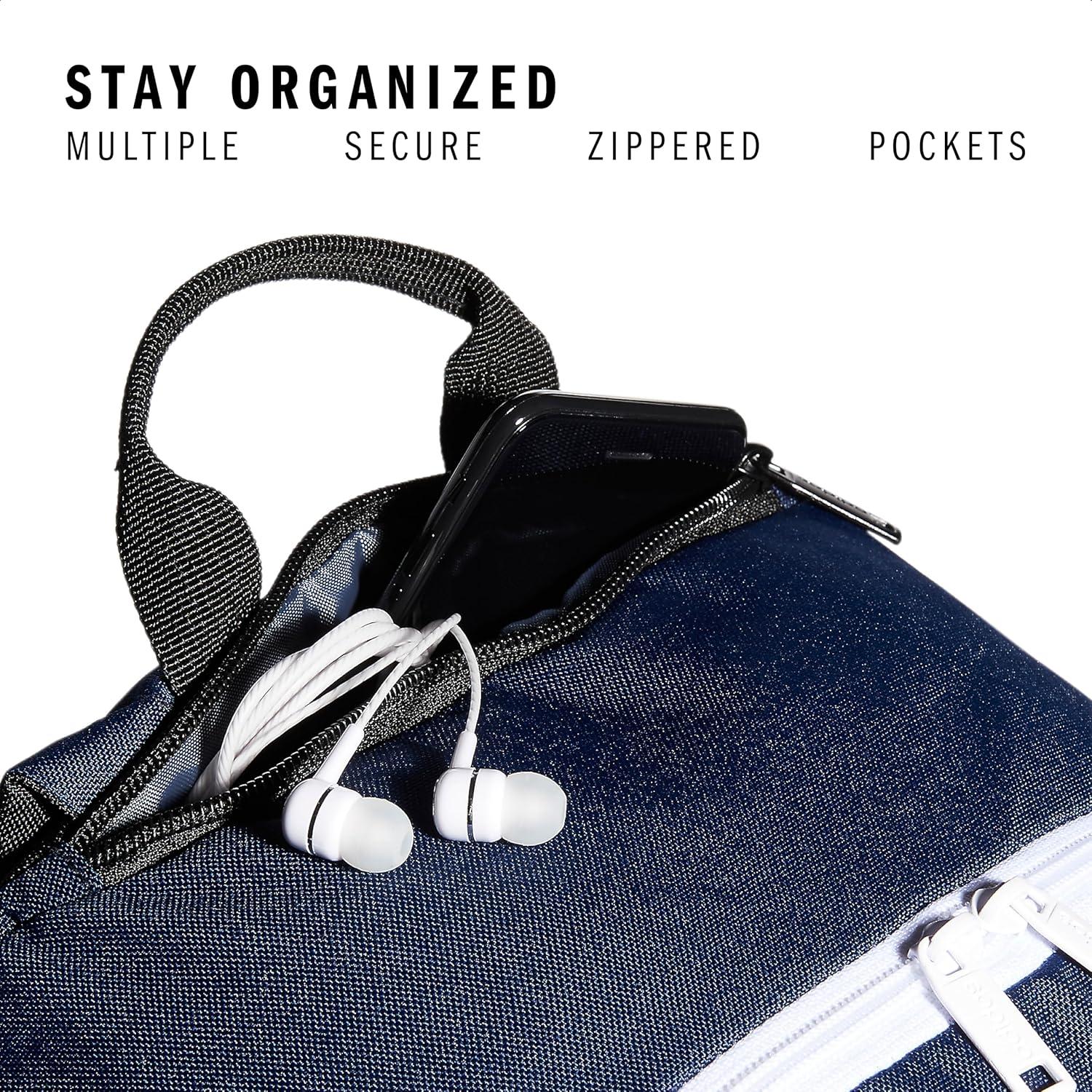 No need to stop at home after work. Everything you need for the gym fits into this adidas backpack. It has plenty of storage for spare clothes, plus a laptop sleeve and pockets for your water bottles, sunglasses, cards, keys and more. Sling it over your shoulders and you're good to go.