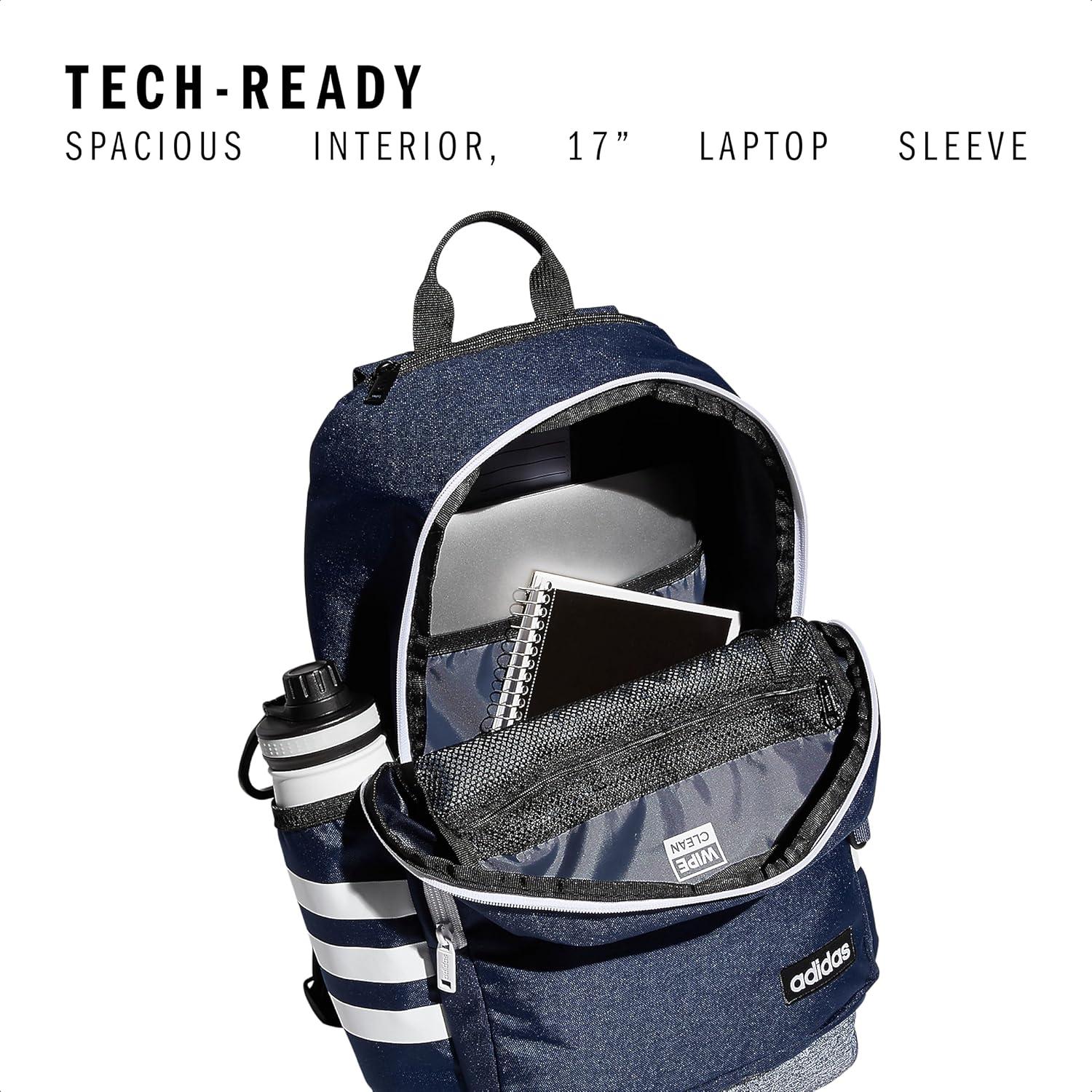 adidas 3-Stripe Classic Backpack for Men and Women, Bag with Laptop Sleeve, Meadow Floral Wonder White/Wonder White/5.0, One Size(Collegiate Navy/Jersey Onix Grey/White/4.0)