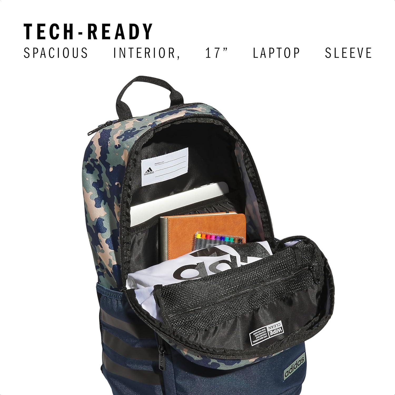 adidas 3-Stripe Classic Backpack for Men and Women, Bag with Laptop Sleeve, Meadow Floral Wonder White/Wonder White/5.0, One Size(Essential Camo Crew Navy-silver Green/Crew Navy/Black/4.0)