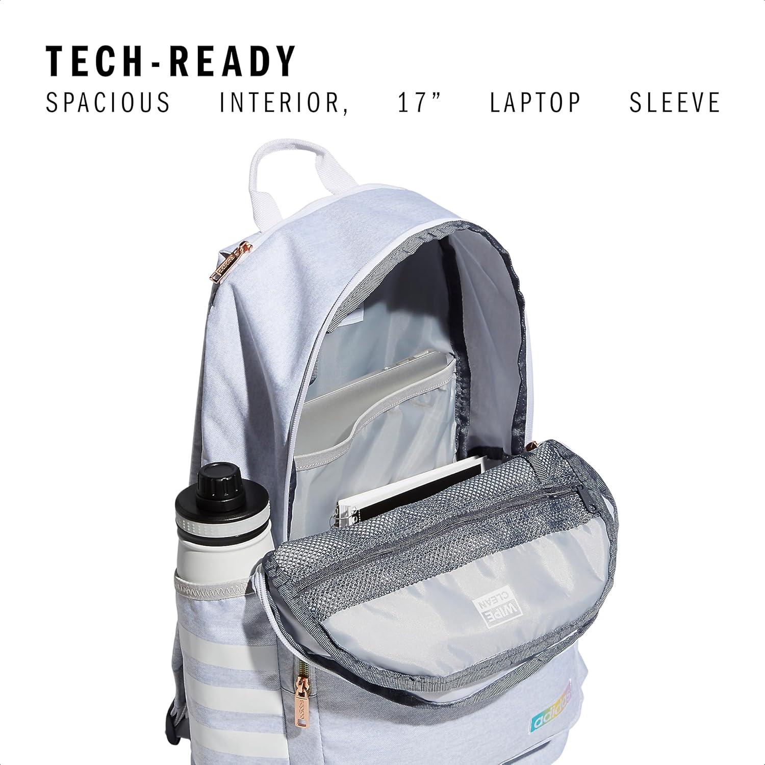 adidas 3-Stripe Classic Backpack for Men and Women, Bag with Laptop Sleeve, Meadow Floral Wonder White/Wonder White/5.0, One Size(Jersey White/White Rainbow/4.0)