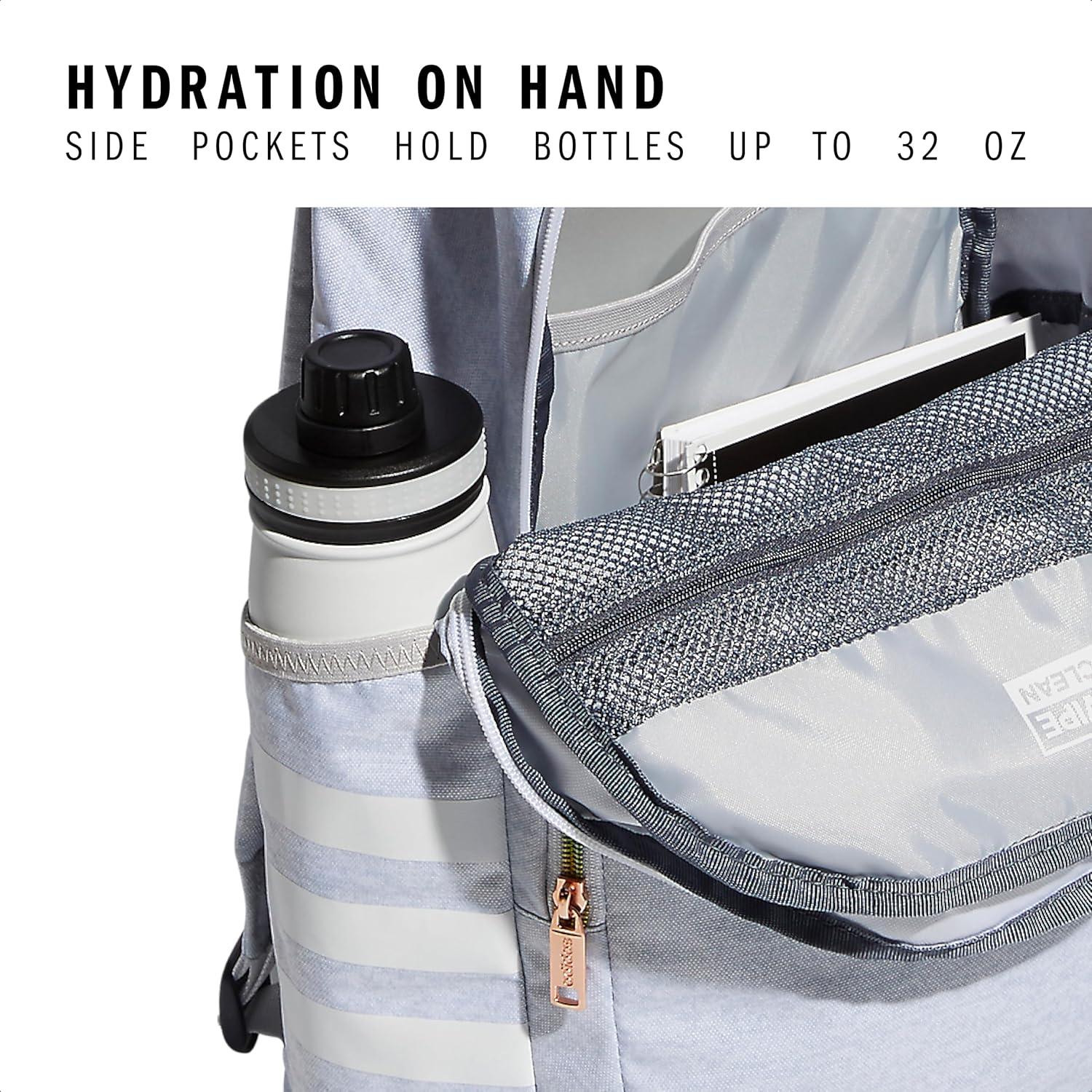 No need to stop at home after work. Everything you need for the gym fits into this adidas backpack. It has plenty of storage for spare clothes, plus a laptop sleeve and pockets for your water bottles, sunglasses, cards, keys and more. Sling it over your shoulders and you're good to go.