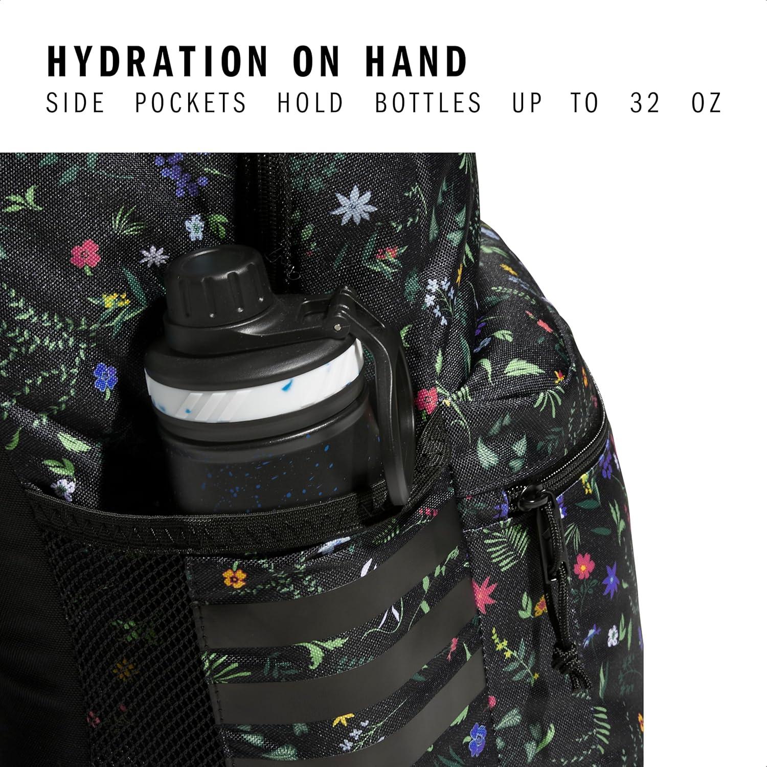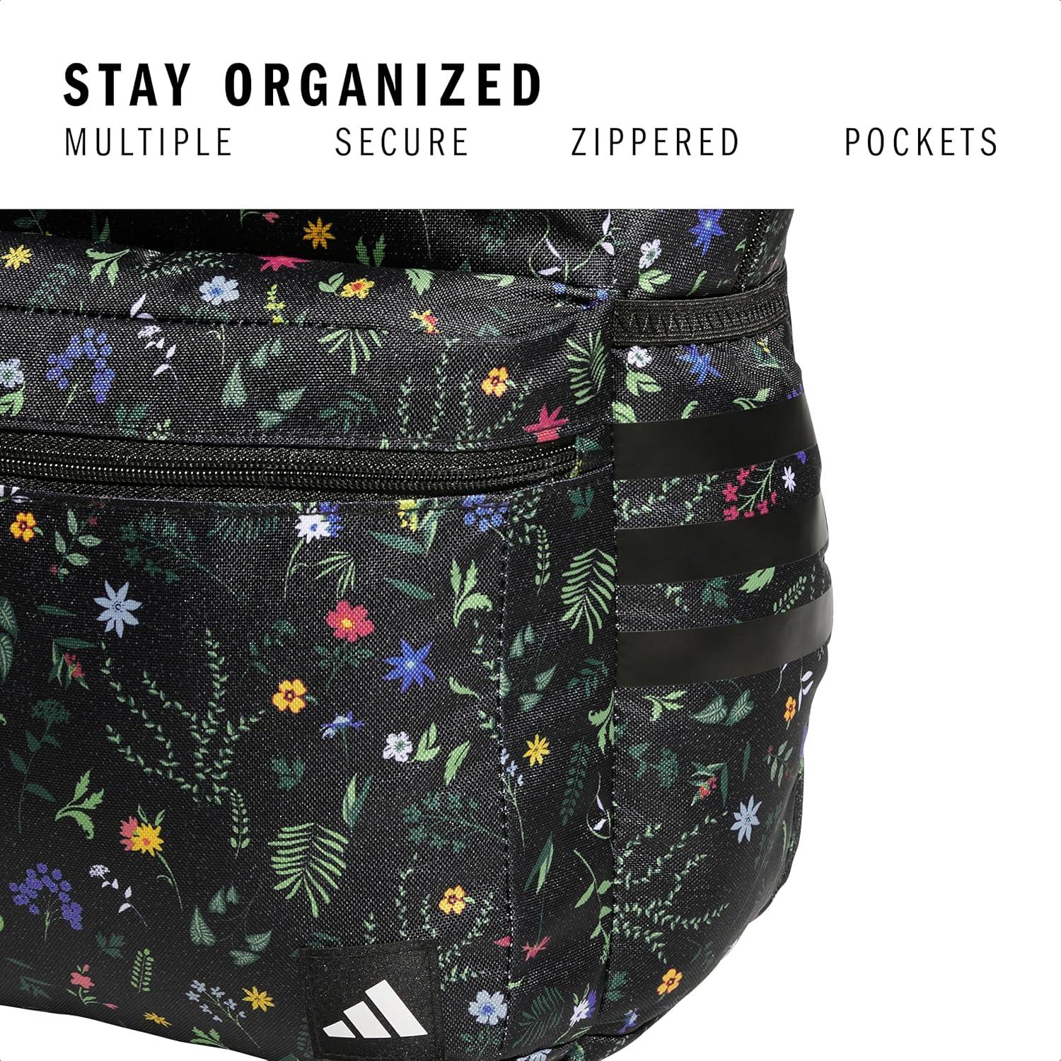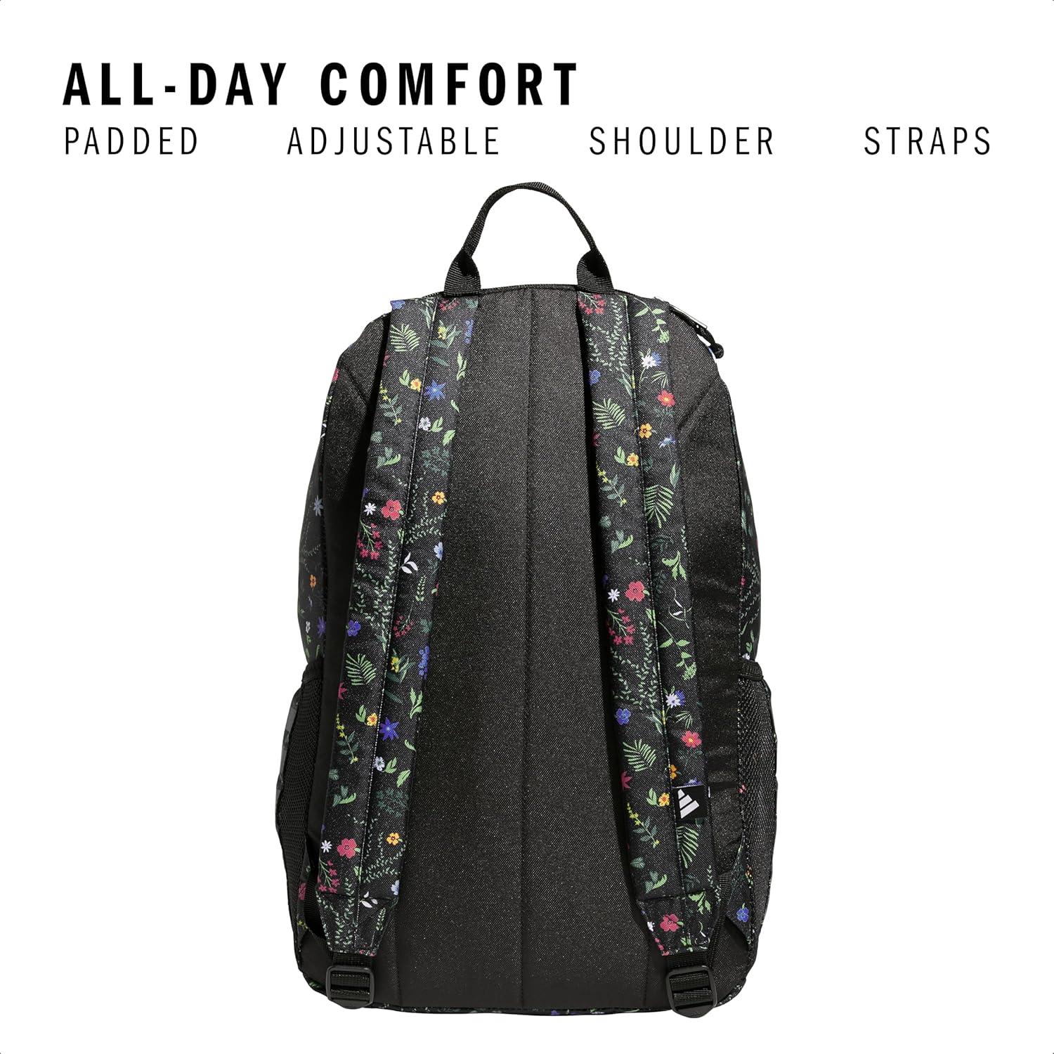 adidas 3-Stripe Classic Backpack for Men and Women, Bag with Laptop Sleeve, Meadow Floral Wonder White/Wonder White/5.0, One Size(Meadow Floral Black/Black/White/5.0)