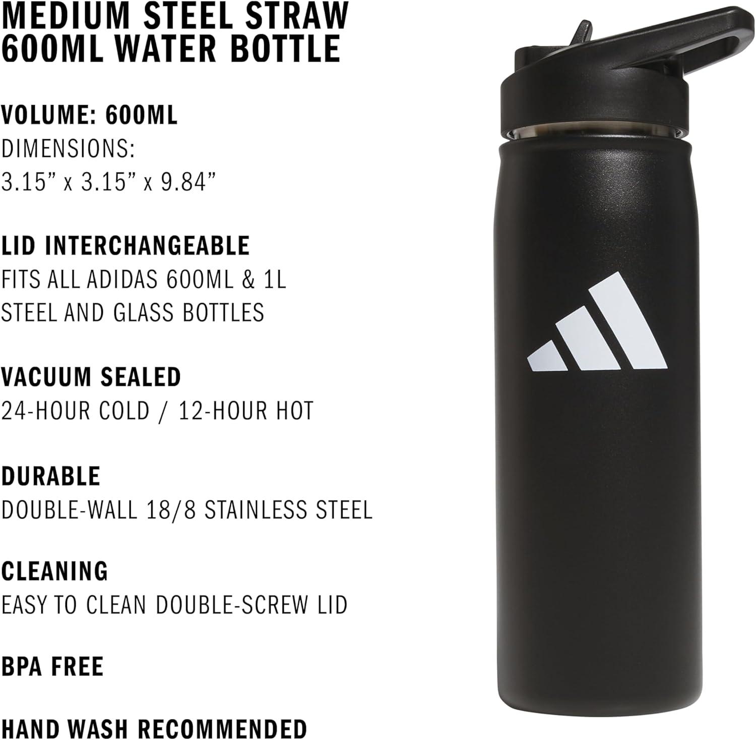 adidas 600 ML (20 oz) Straw Top Metal Water Bottle, Hot/Cold Double-Walled Insulated 18/8 Stainless Steel(Black/White)