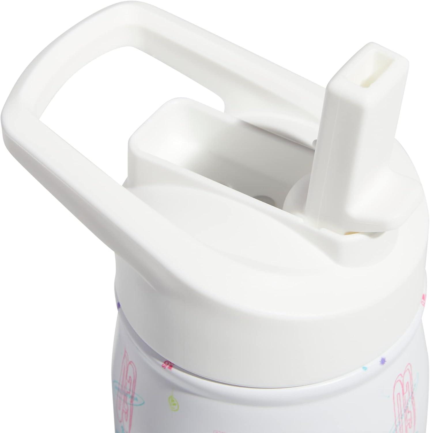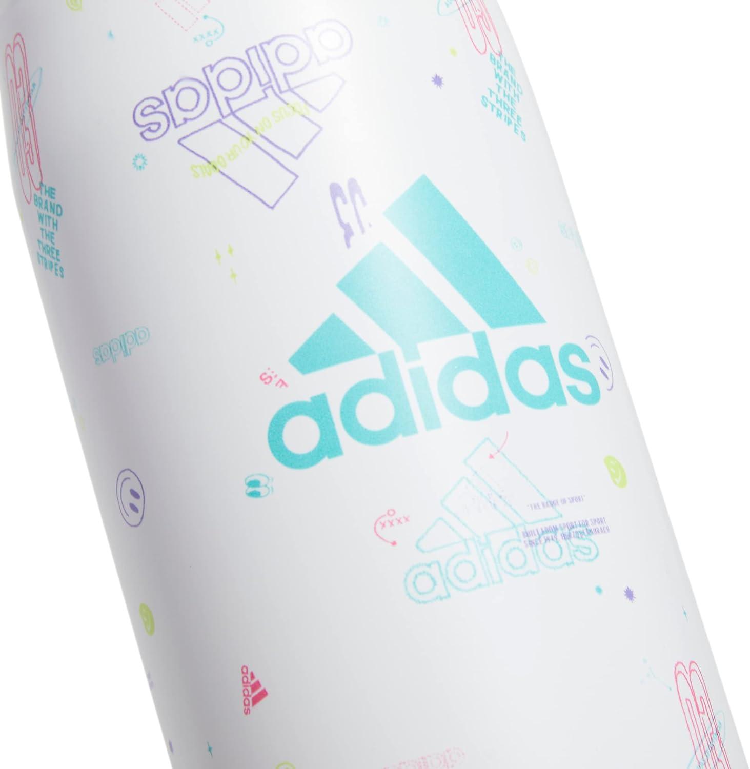 adidas 600 ML (20 oz) Straw Top Metal Water Bottle, Hot/Cold Double-Walled Insulated 18/8 Stainless Steel(Icon Brand Love White/White/Flash Aqua Blue)