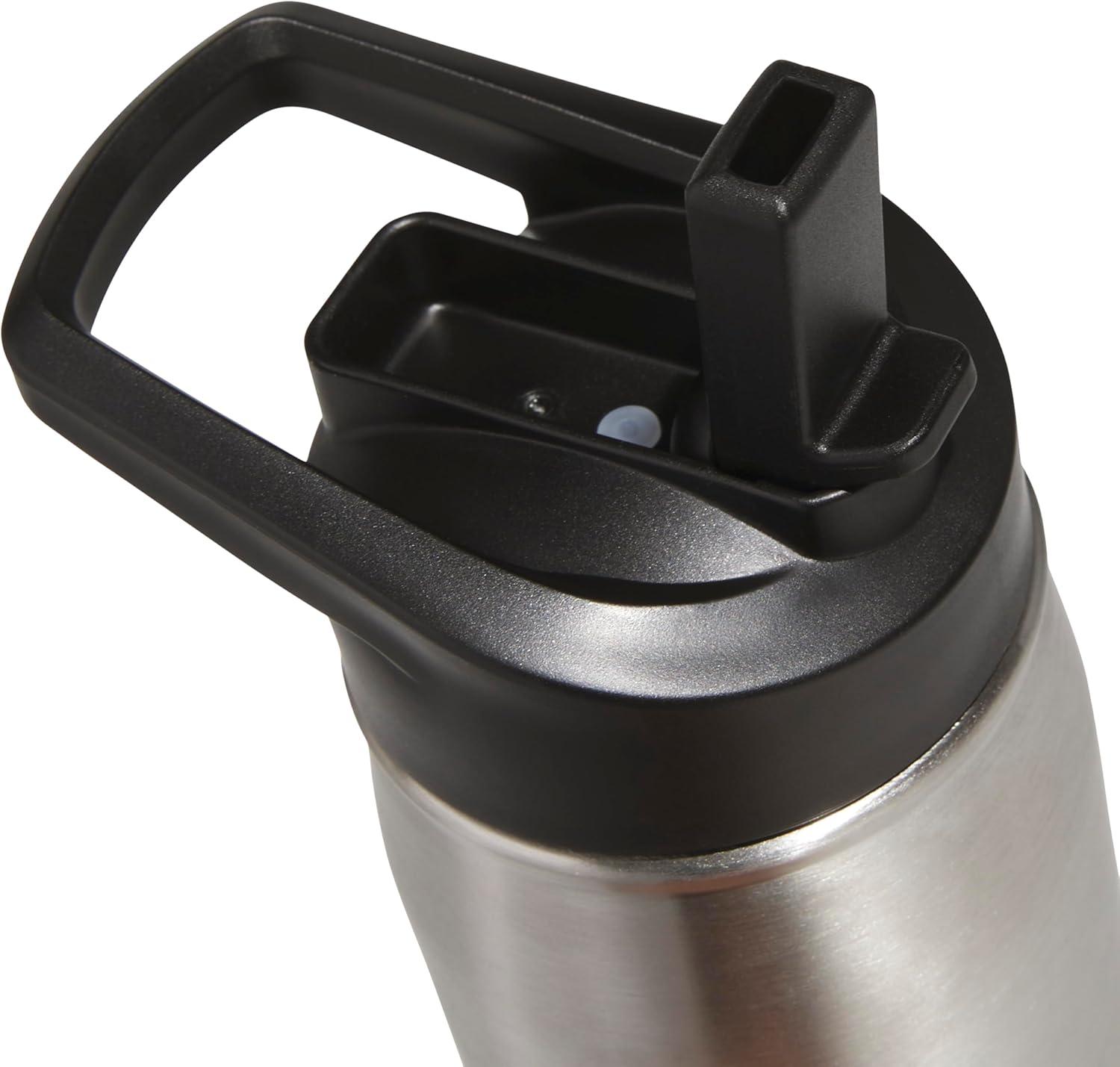 adidas 600 ML (20 oz) Straw Top Metal Water Bottle, Hot/Cold Double-Walled Insulated 18/8 Stainless Steel(Stainless Steel/Black 1)