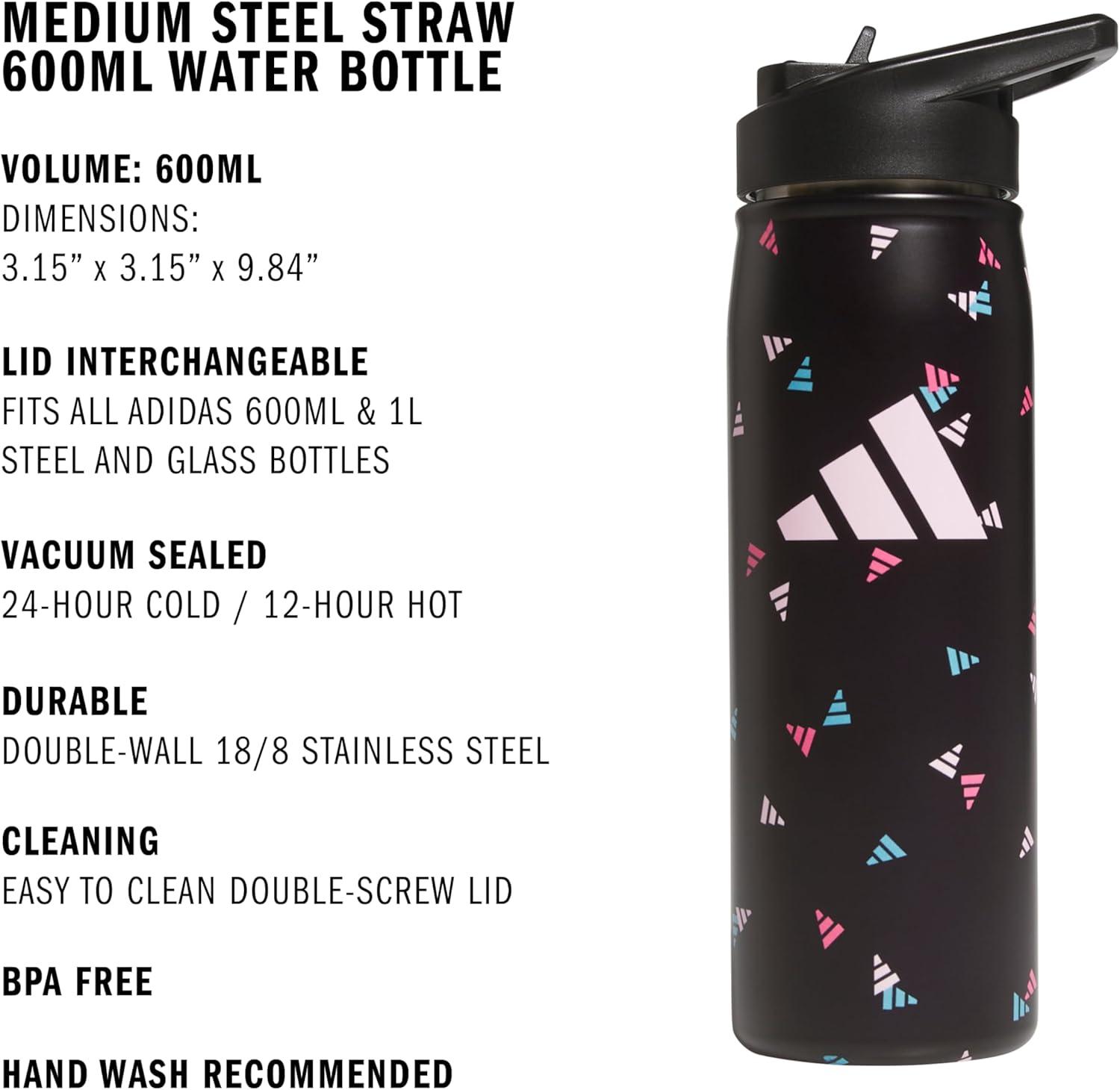 This metal bottle from adidas is designed to keep beverages cold for up to 24 hours and warm for up to 12 hours. it's made of durable stainless steel. the easy-to-use straw top is bpa-free.