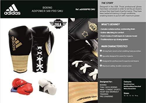 Designed in the USA, adidas Adi-Power Hybrid 500 Pro Sparring gloves are top of the line training gloves carefully catered to professional boxers. These gloves use innovative Cloud MVE foam that is extremely protective and has exceptional ability to absorb heavy punches. The glove padding is hand molded and extreme care is taken to ensure the glove is shaped to protect the hand while delivering hard punches. The ergonomic shape of the gloves ensures a comfortable fit the very first time you use them by conforming to the shape of your hand, so you don’t need to break them in. Full satin nylon interior hand liner provides great comfort and prevents water absorption to the foam. The outstanding finish on the outer leather, along with the traditional lace-up closure, gives these gloves a premium and professional feel you won’t be able to get anywhere else! Like with all boxing gloves, we suggest using a knuckle sleeve, quick hand wrap or a regular hand wraps to protect skin on your knuckles.