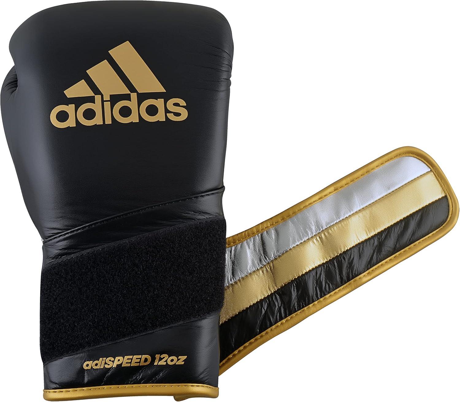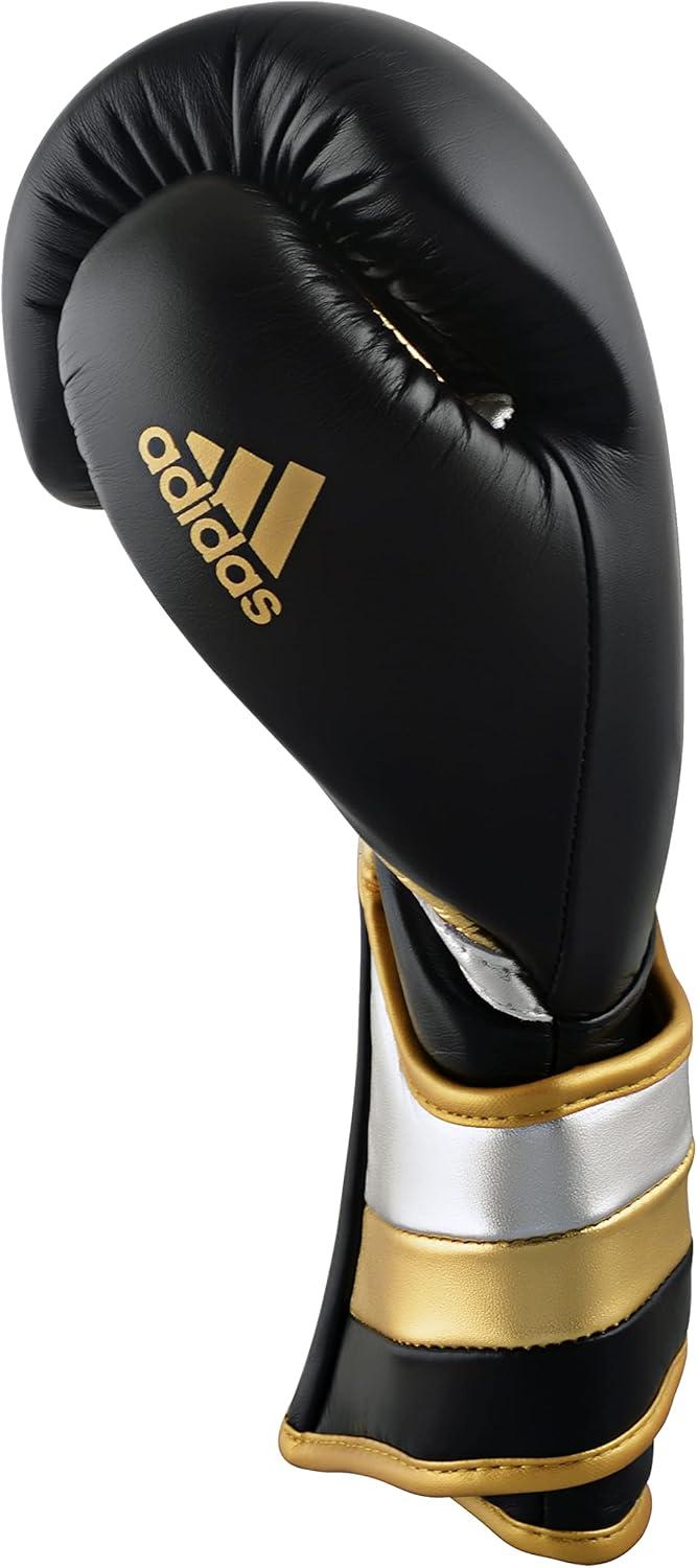 adidas Adi-Speed 501 Pro Kickboxing & Boxing Gloves for Men & Women – Leather Training Gloves for Heavy Bag, Sparring & Fitness(MET BLACK/SILVER/GOLD)
