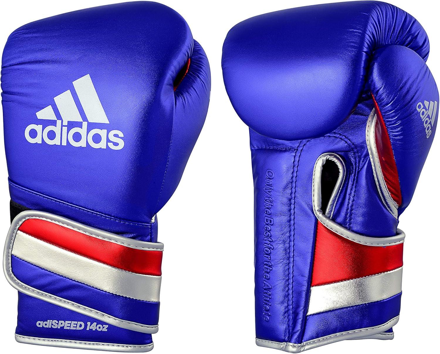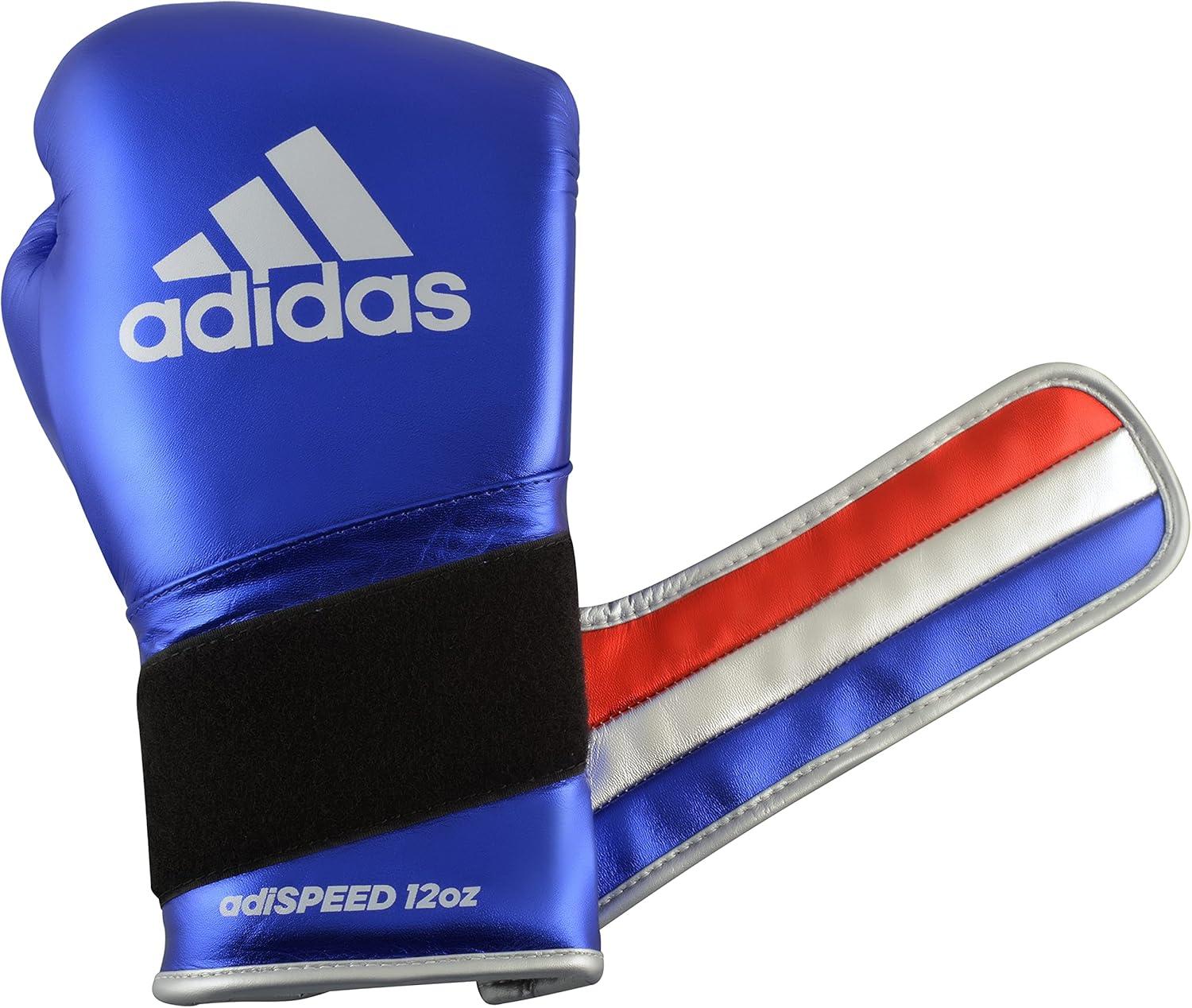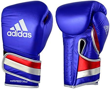 adidas Adi-Speed 501 Pro Kickboxing & Boxing Gloves for Men & Women – Leather Training Gloves for Heavy Bag, Sparring & Fitness(MET BLUE/RED/SILVER)