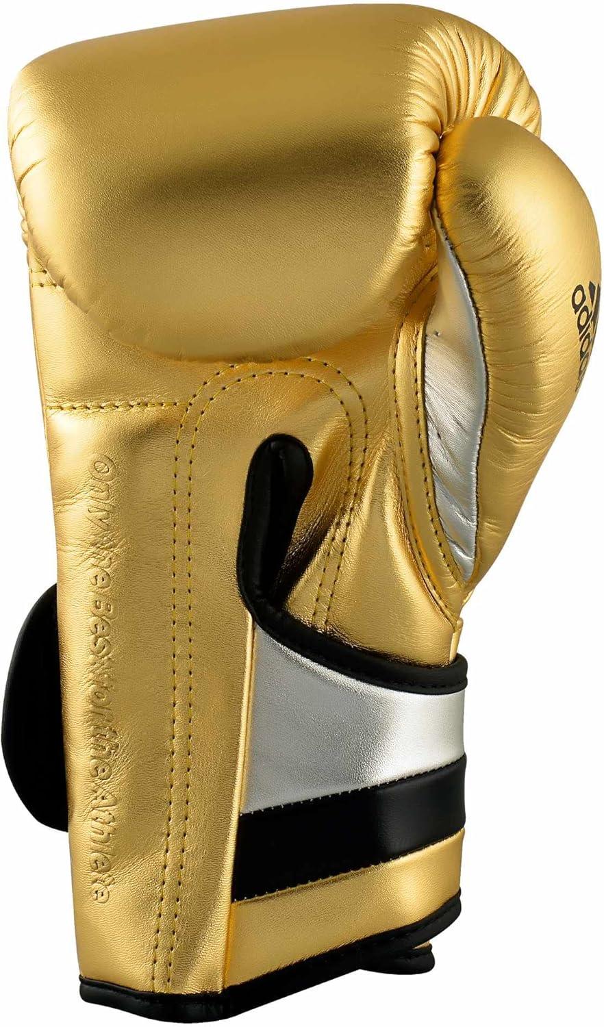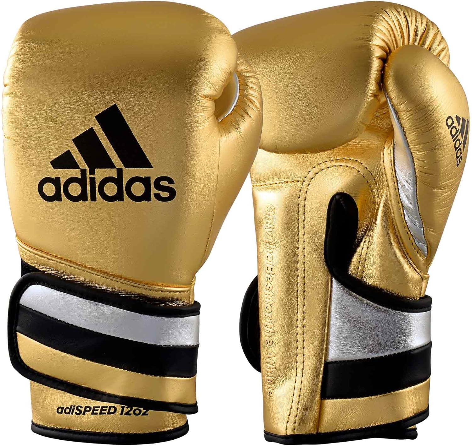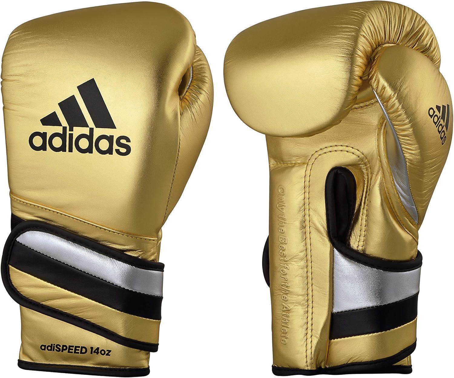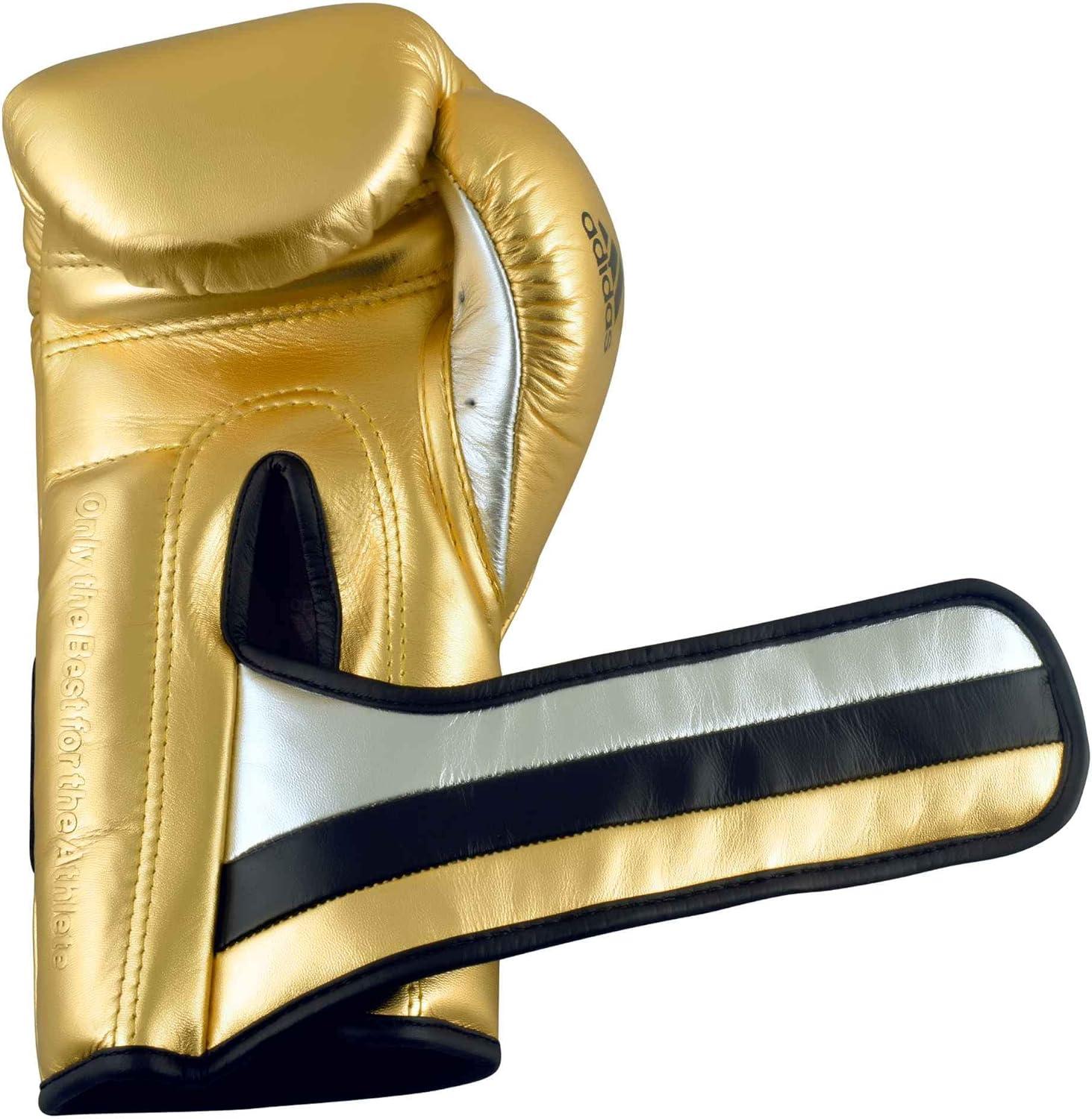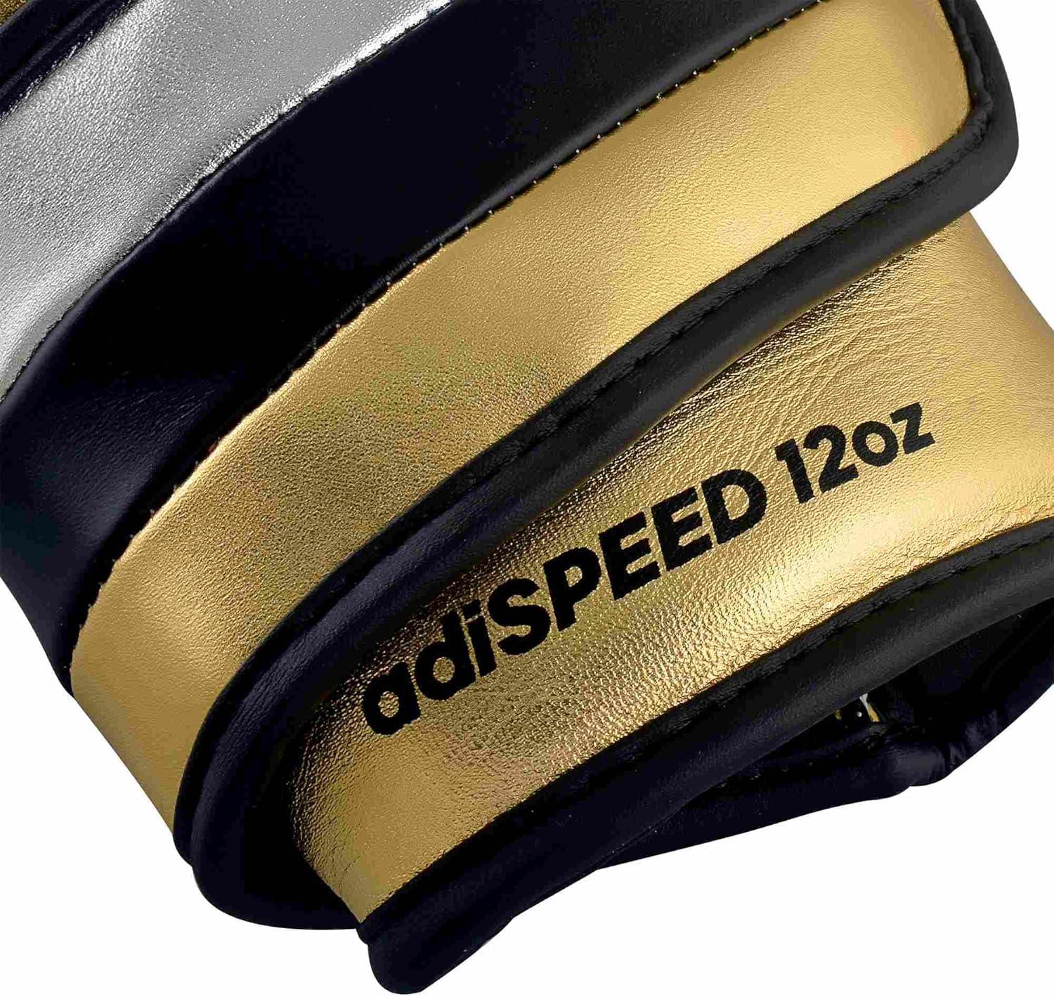 adidas Adi-Speed 501 Pro Kickboxing & Boxing Gloves for Men & Women – Leather Training Gloves for Heavy Bag, Sparring & Fitness(MET GOLD/SILVER/BLACK)