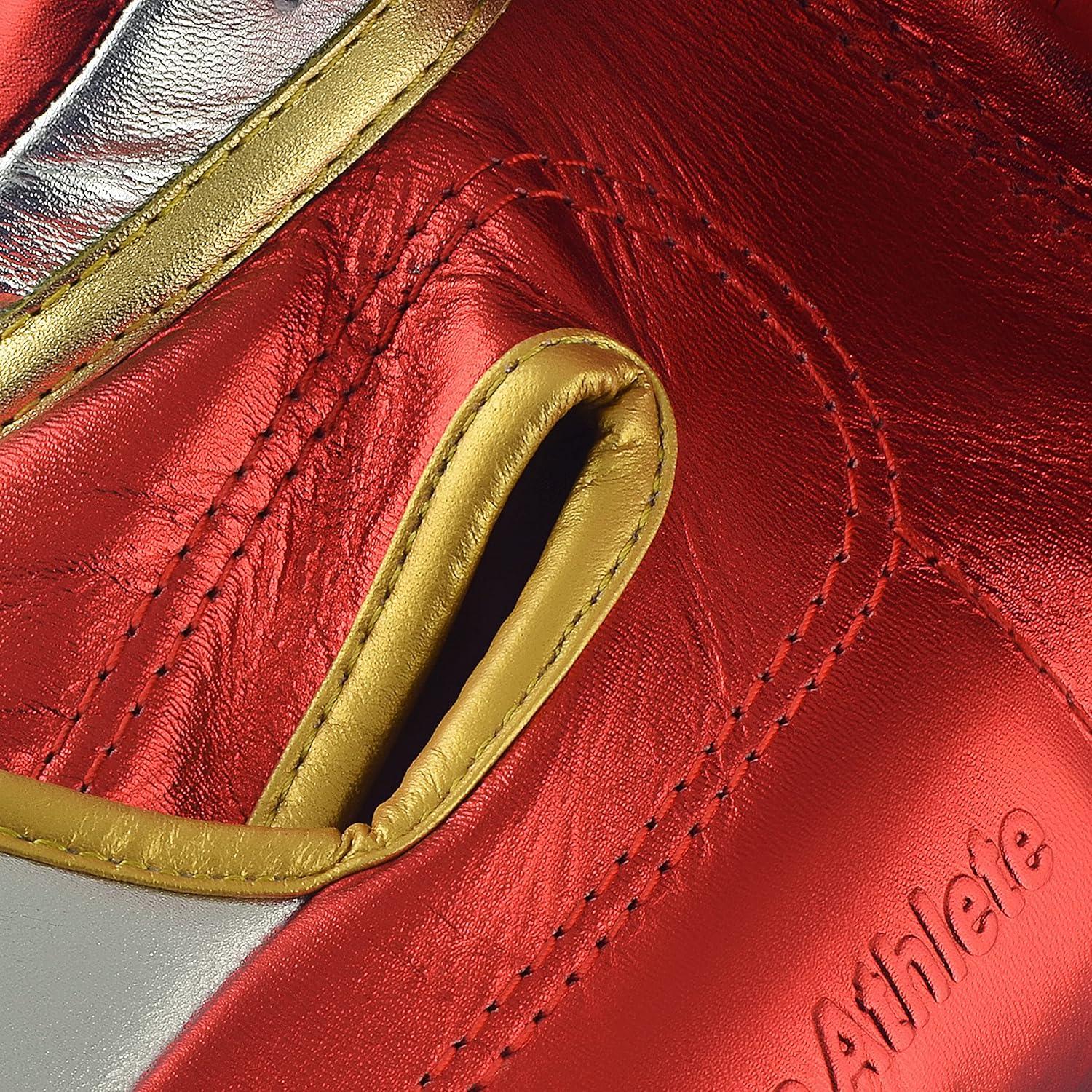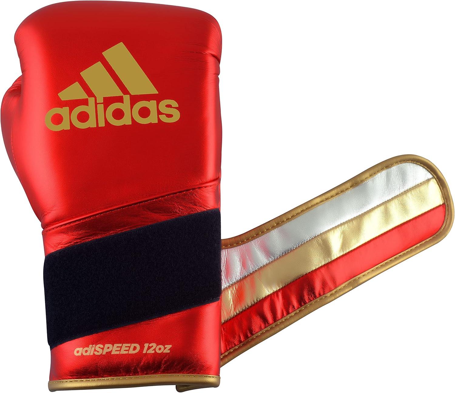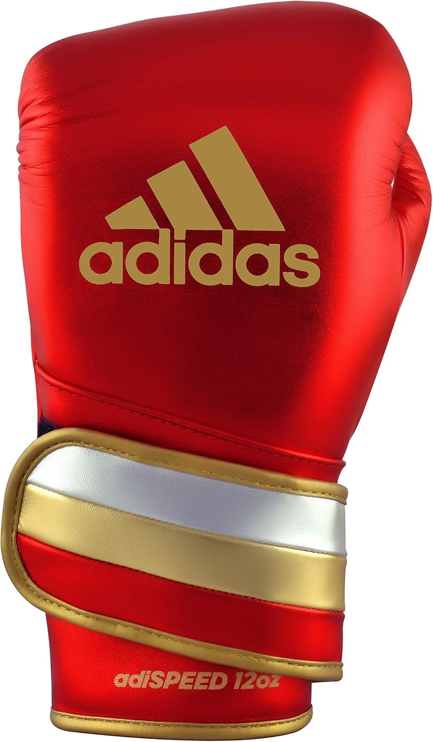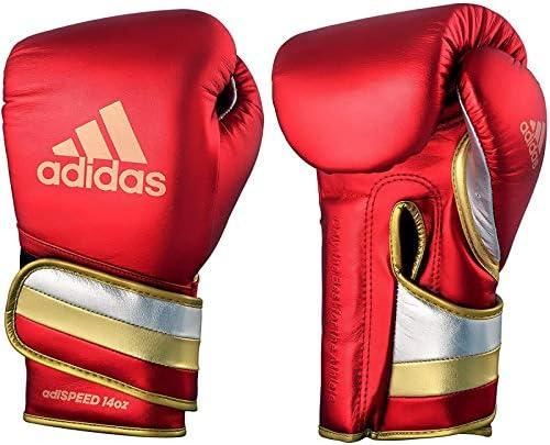 adidas Adi-Speed 501 Pro Kickboxing & Boxing Gloves for Men & Women – Leather Training Gloves for Heavy Bag, Sparring & Fitness(MET RED/GOLD/SILVER)