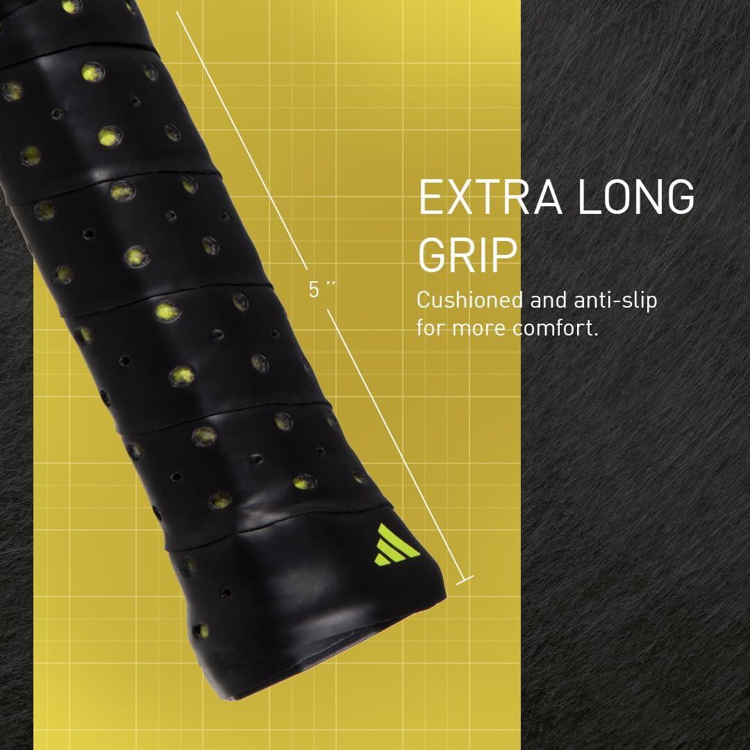 ENHANCED PERFORMANCE AND COMFORT: Offering optimal comfort the 14mm Low Density Polypropylene Honeycomb LD core provides a soft feel, while the cushioned non-slip grip and 5″ long handle provide extended reach and increased swing speed.