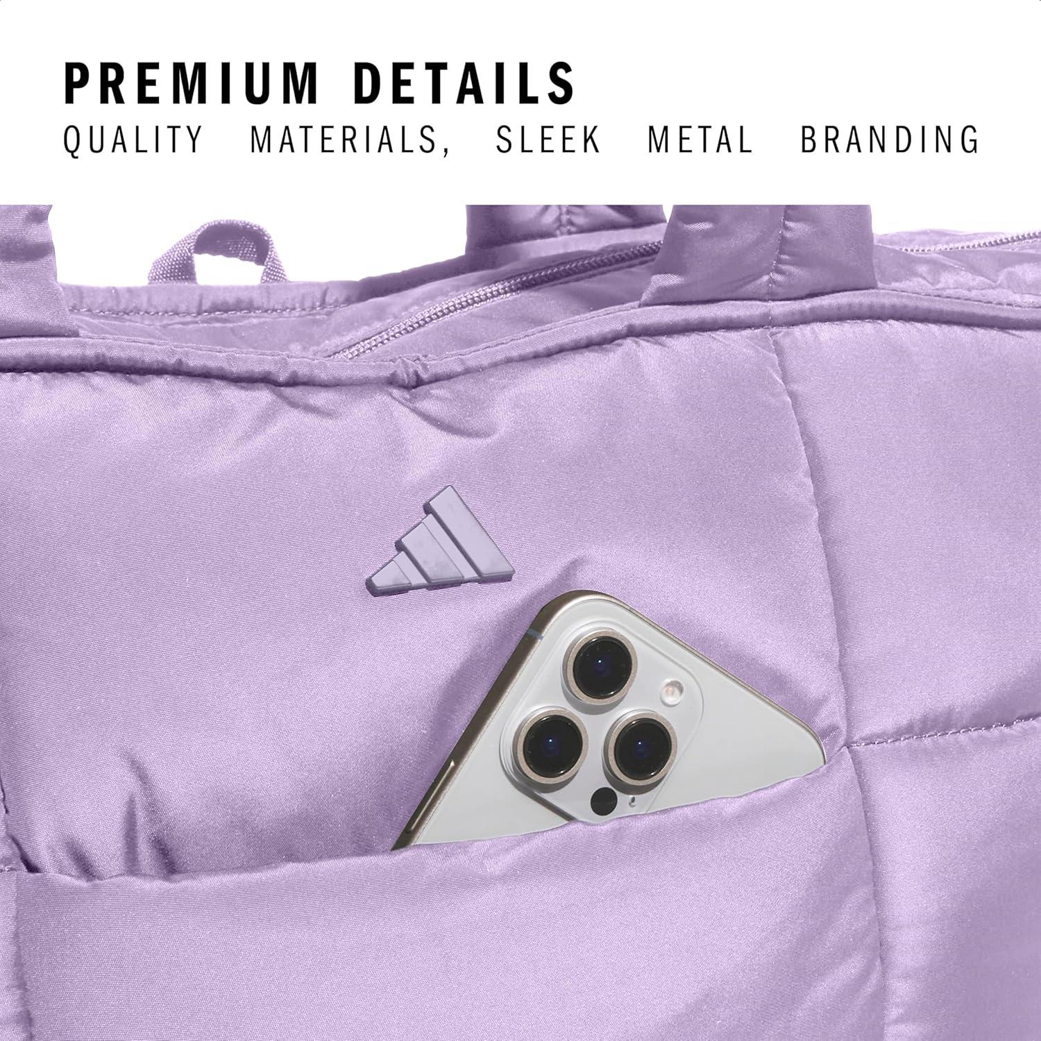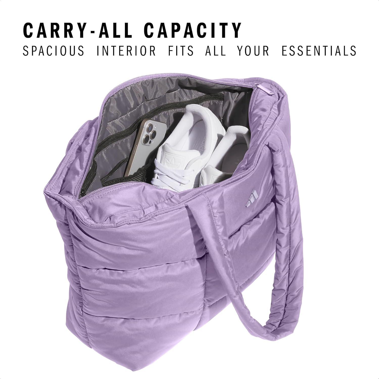adidas All Me Quilted Puffer Tote Bag for Women(Powder Plum Purple)