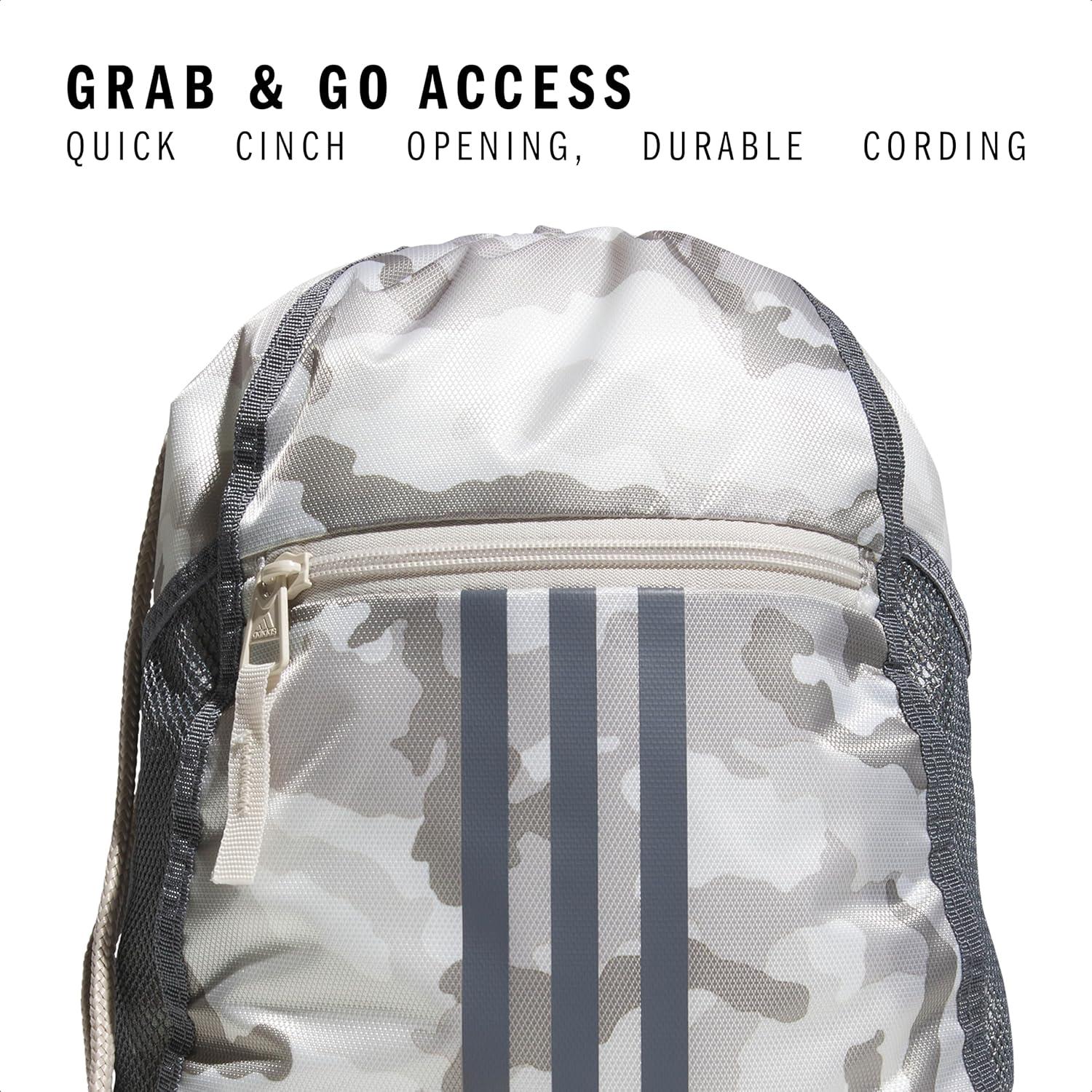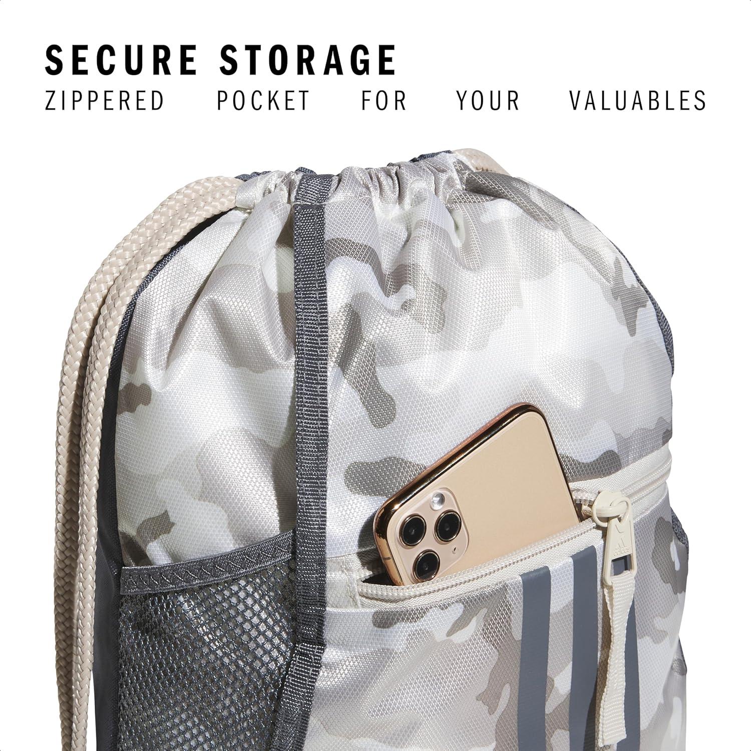 The adidas Alliance Sackpack (12L) is a versatile drawstring backpack designed for athletes and fitness enthusiasts. This lightweight athletic small drawstring bag is perfect as a gym bag or a convenient mini gym bag. Its classic design adapts easily for various uses. Crafted for sports and travel, it serves as an ideal sneaker bag for travel, easily transforming into a sport backpack or a gym drawstring bag. The bag features drop mesh water bottle pockets, making it a reliable sports bag for men and women or a gym bag small for quick trips. The easy cinch opening with durable cording straps allows quick access, while the zippered exterior pocket is perfect for holding your phone or other small essentials. Whether you need a small travel bag, basketball backpack for boys, soccer backpack for girls, or an adidas backpack for men, this string backpack combines functionality and style effortlessly.