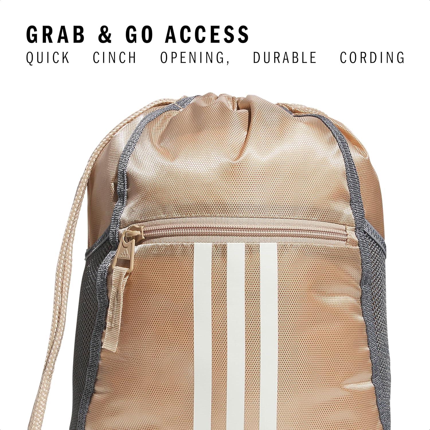 The adidas Alliance Sackpack (12L) is a versatile drawstring backpack designed for athletes and fitness enthusiasts. This lightweight athletic small drawstring bag is perfect as a gym bag or a convenient mini gym bag. Its classic design adapts easily for various uses. Crafted for sports and travel, it serves as an ideal sneaker bag for travel, easily transforming into a sport backpack or a gym drawstring bag. The bag features drop mesh water bottle pockets, making it a reliable sports bag for men and women or a gym bag small for quick trips. The easy cinch opening with durable cording straps allows quick access, while the zippered exterior pocket is perfect for holding your phone or other small essentials. Whether you need a small travel bag, basketball backpack for boys, soccer backpack for girls, or an adidas backpack for men, this string backpack combines functionality and style effortlessly.