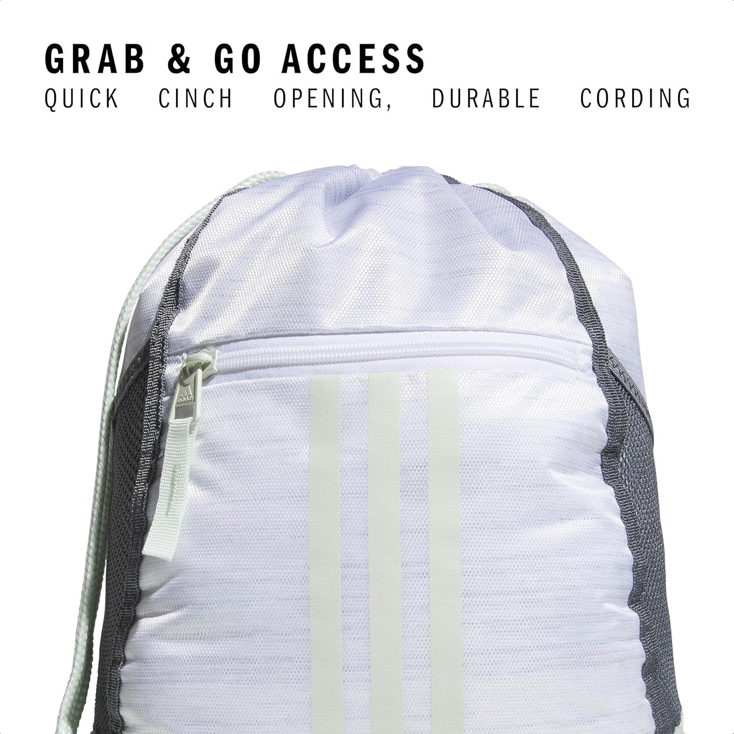 The adidas Alliance Sackpack (12L) is a versatile drawstring backpack designed for athletes and fitness enthusiasts. This lightweight athletic small drawstring bag is perfect as a gym bag or a convenient mini gym bag. Its classic design adapts easily for various uses. Crafted for sports and travel, it serves as an ideal sneaker bag for travel, easily transforming into a sport backpack or a gym drawstring bag. The bag features drop mesh water bottle pockets, making it a reliable sports bag for men and women or a gym bag small for quick trips. The easy cinch opening with durable cording straps allows quick access, while the zippered exterior pocket is perfect for holding your phone or other small essentials. Whether you need a small travel bag, basketball backpack for boys, soccer backpack for girls, or an adidas backpack for men, this string backpack combines functionality and style effortlessly.