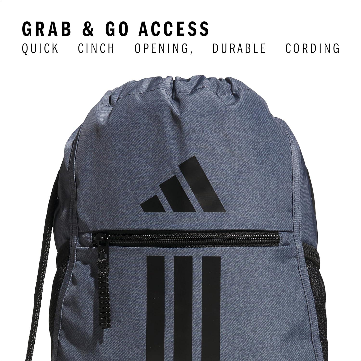 The adidas Alliance Sackpack (12L) is a versatile drawstring backpack designed for athletes and fitness enthusiasts. This lightweight athletic small drawstring bag is perfect as a gym bag or a convenient mini gym bag. Its classic design adapts easily for various uses. Crafted for sports and travel, it serves as an ideal sneaker bag for travel, easily transforming into a sport backpack or a gym drawstring bag. The bag features drop mesh water bottle pockets, making it a reliable sports bag for men and women or a gym bag small for quick trips. The easy cinch opening with durable cording straps allows quick access, while the zippered exterior pocket is perfect for holding your phone or other small essentials. Whether you need a small travel bag, basketball backpack for boys, soccer backpack for girls, or an adidas backpack for men, this string backpack combines functionality and style effortlessly.
