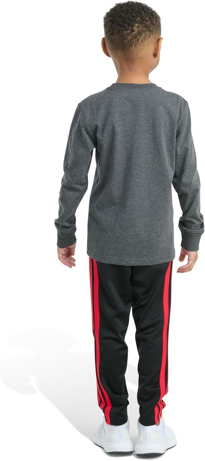 adidas baby-boys 2-piece Long Sleeve Sport Graphic Tee & Pant Set(Dark Grey Heather)