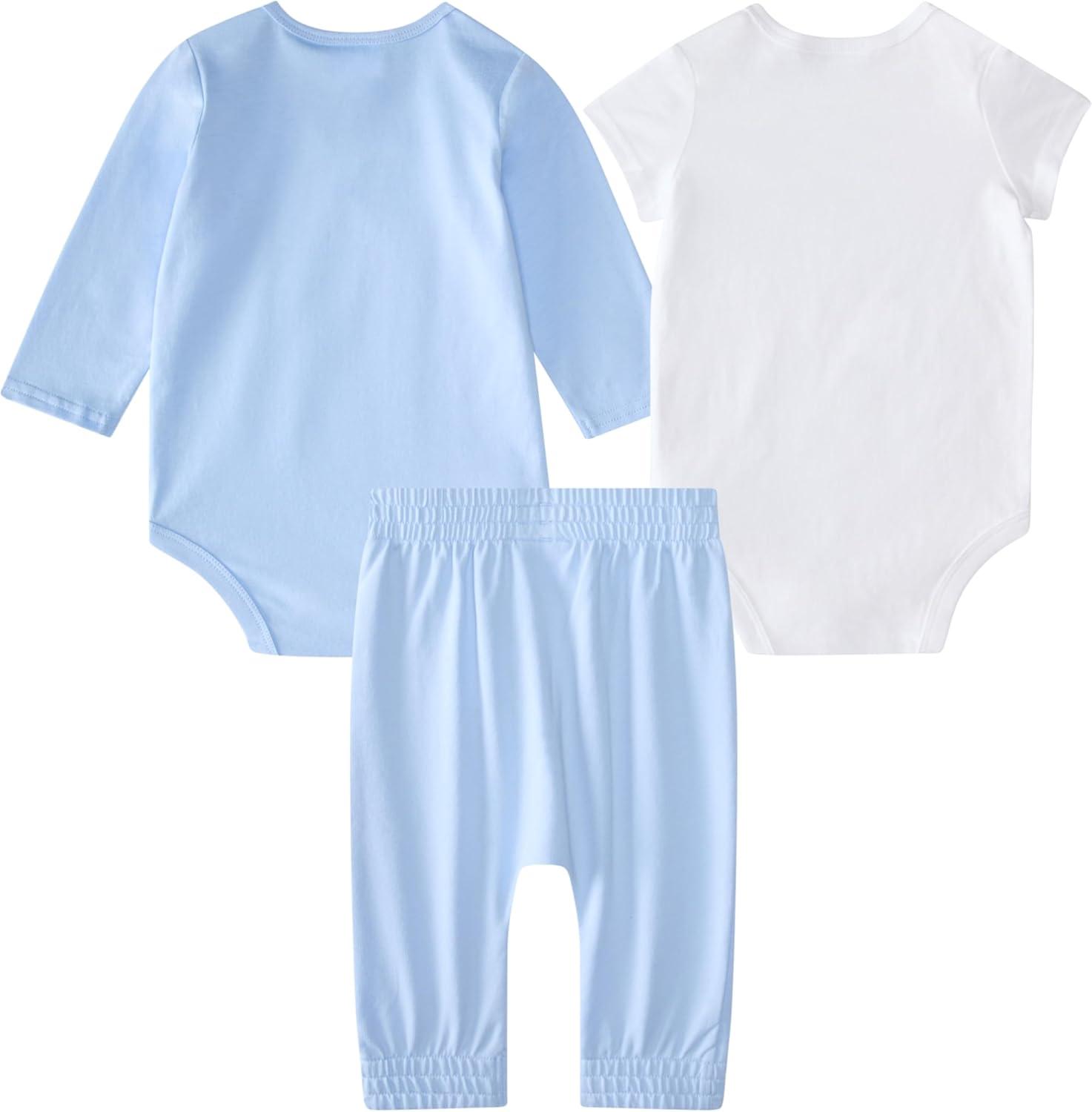 adidas baby-boys 3-piece Linear Logo Bodyshirt & Pant Set(Blue With White)