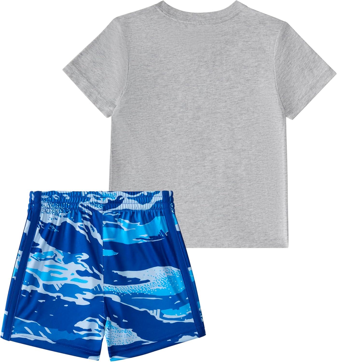 adidas baby-boys Short Sleeve Cotton Heather Tee Shirt and Aop Camo Short Set(Medium Grey Heather)