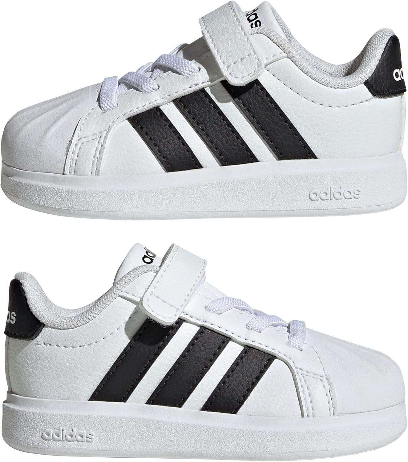 Adidas Baby-Boy’s Streettalk Elastic Lace & Strap Sneaker(White/Black/Black)