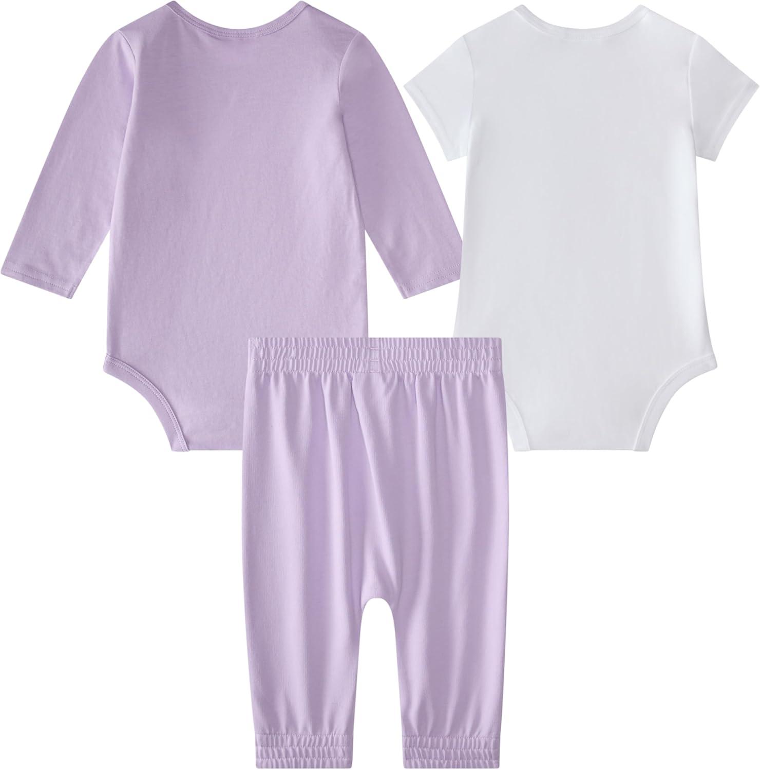 adidas baby-girls 3-piece Logo Bodyshirt & Pant Set(Purple With White)