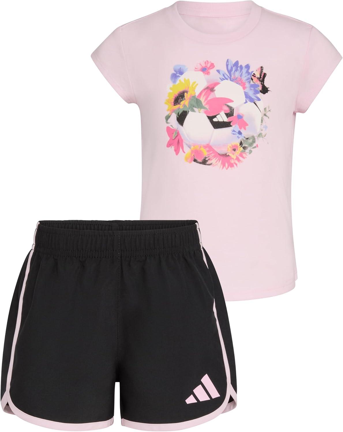 adidas baby-girls Cap Sleeve Tee Shirt and Woven Short Set(Clear Pink)