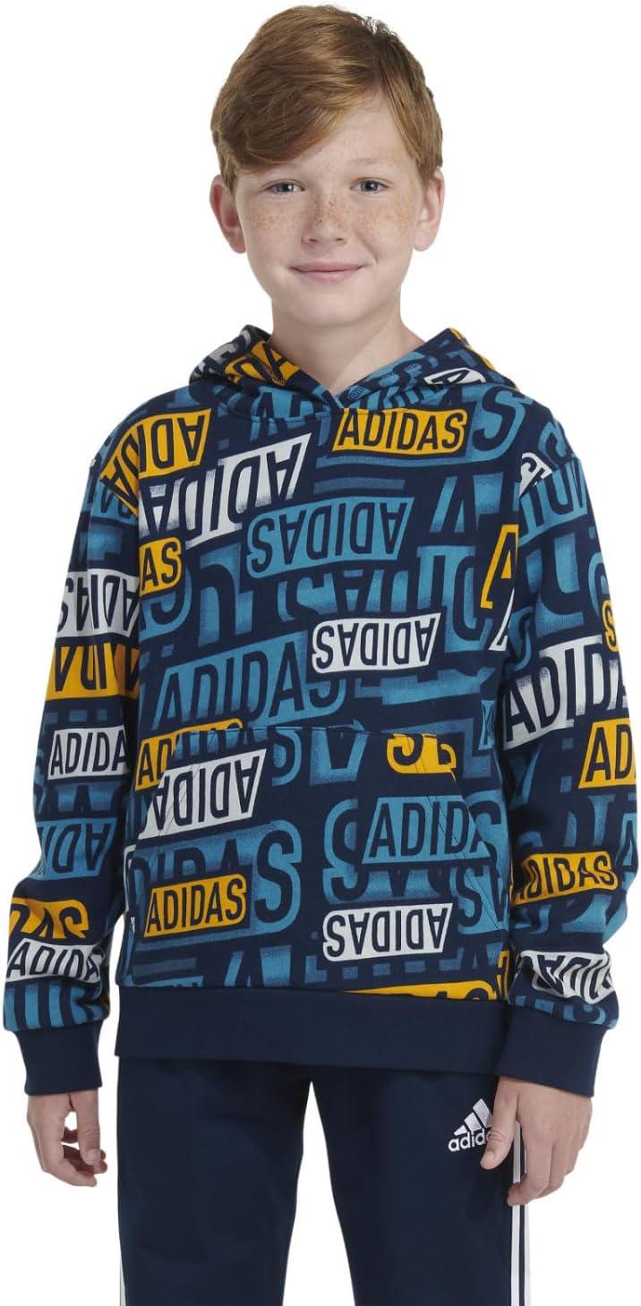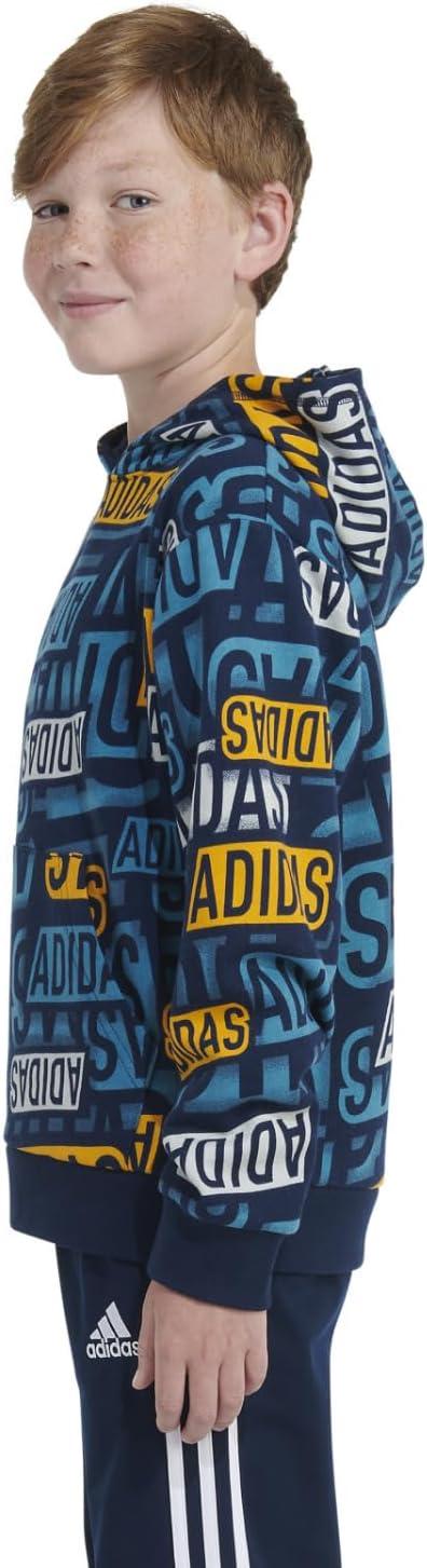 adidas Boys’ Active Sport Athletic Pullover Hooded Sweatshirt(Collegiate Navy)