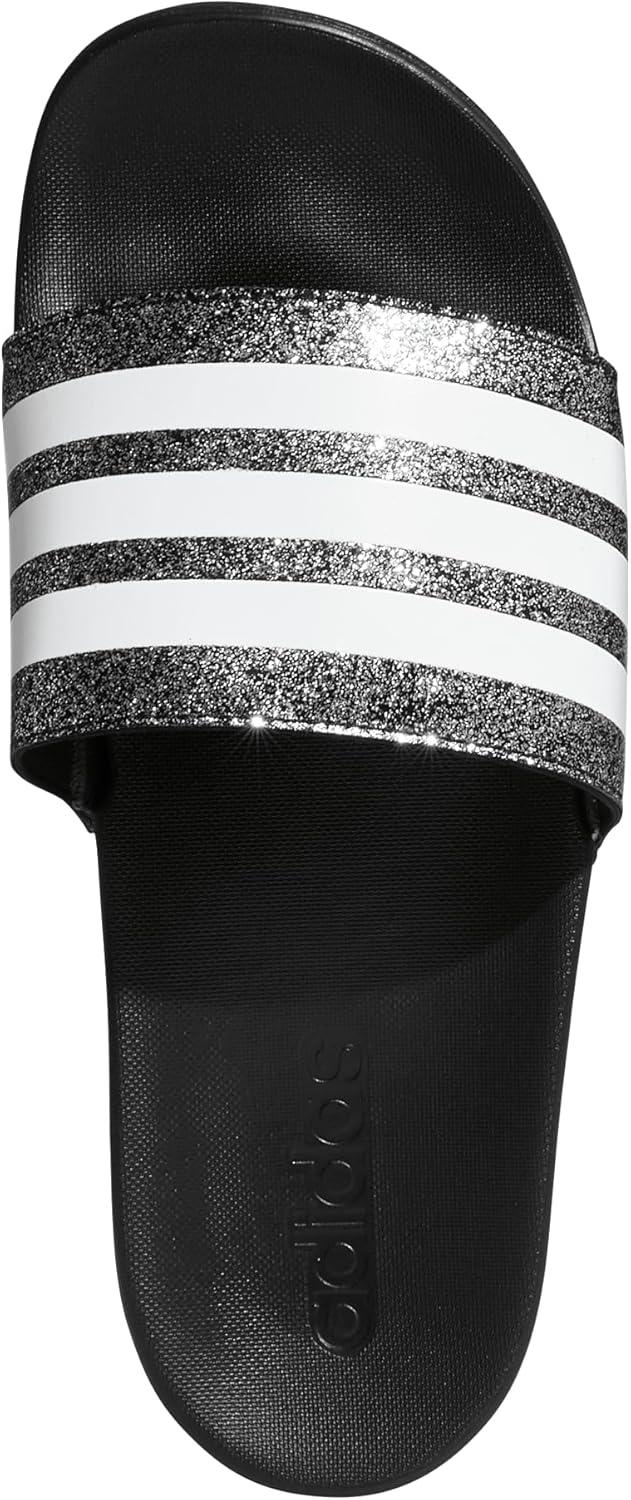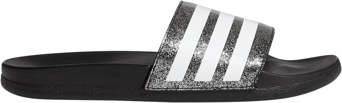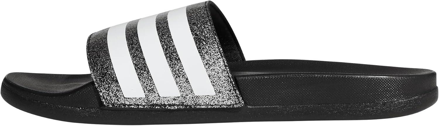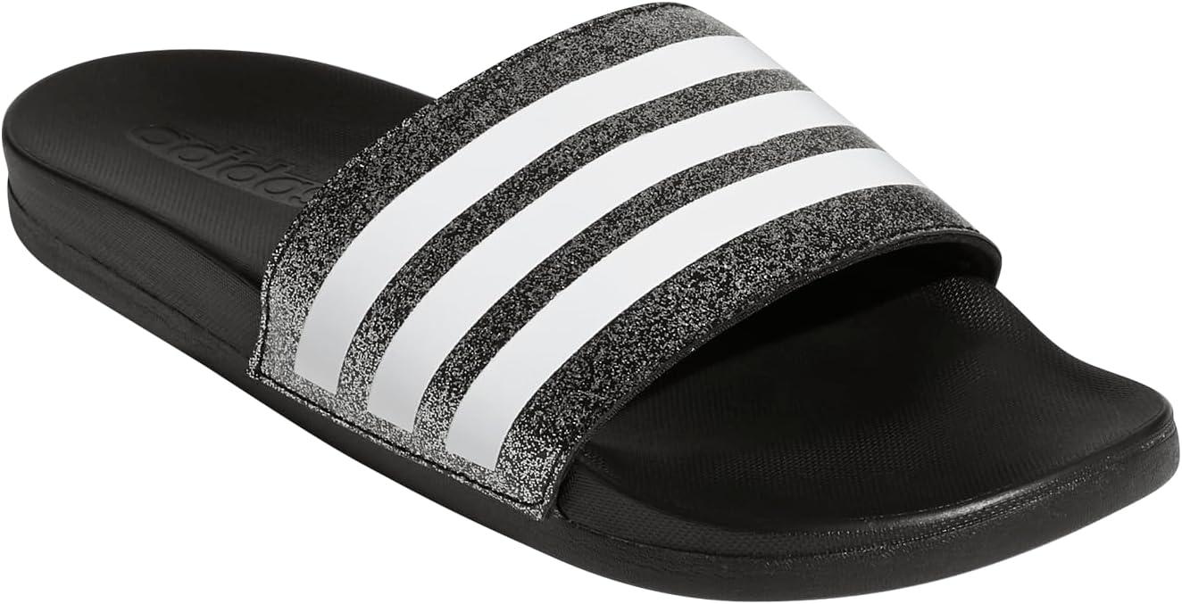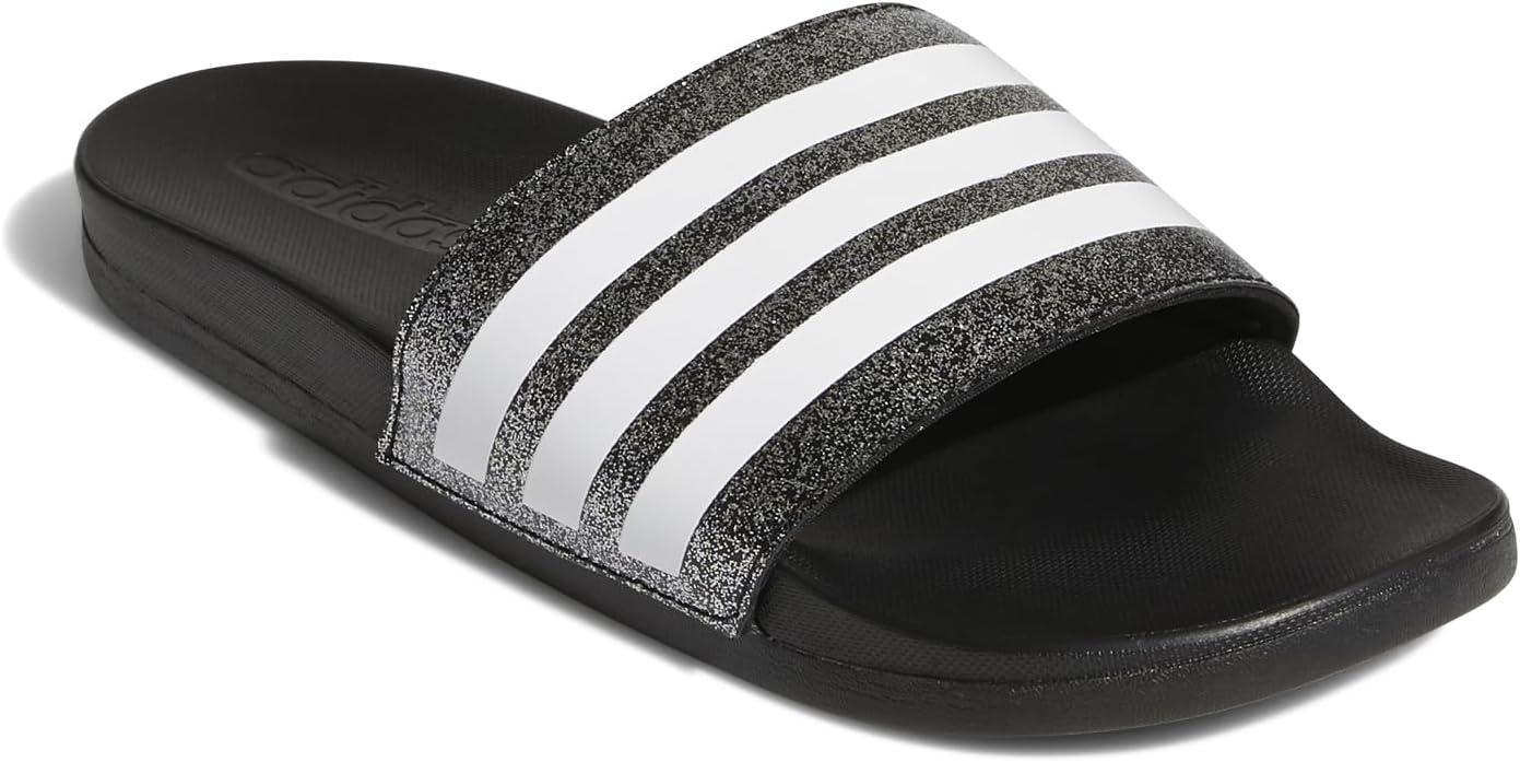 adidas Boys’ Adilette Comfort Slides(Core Black/White/Core Black)
