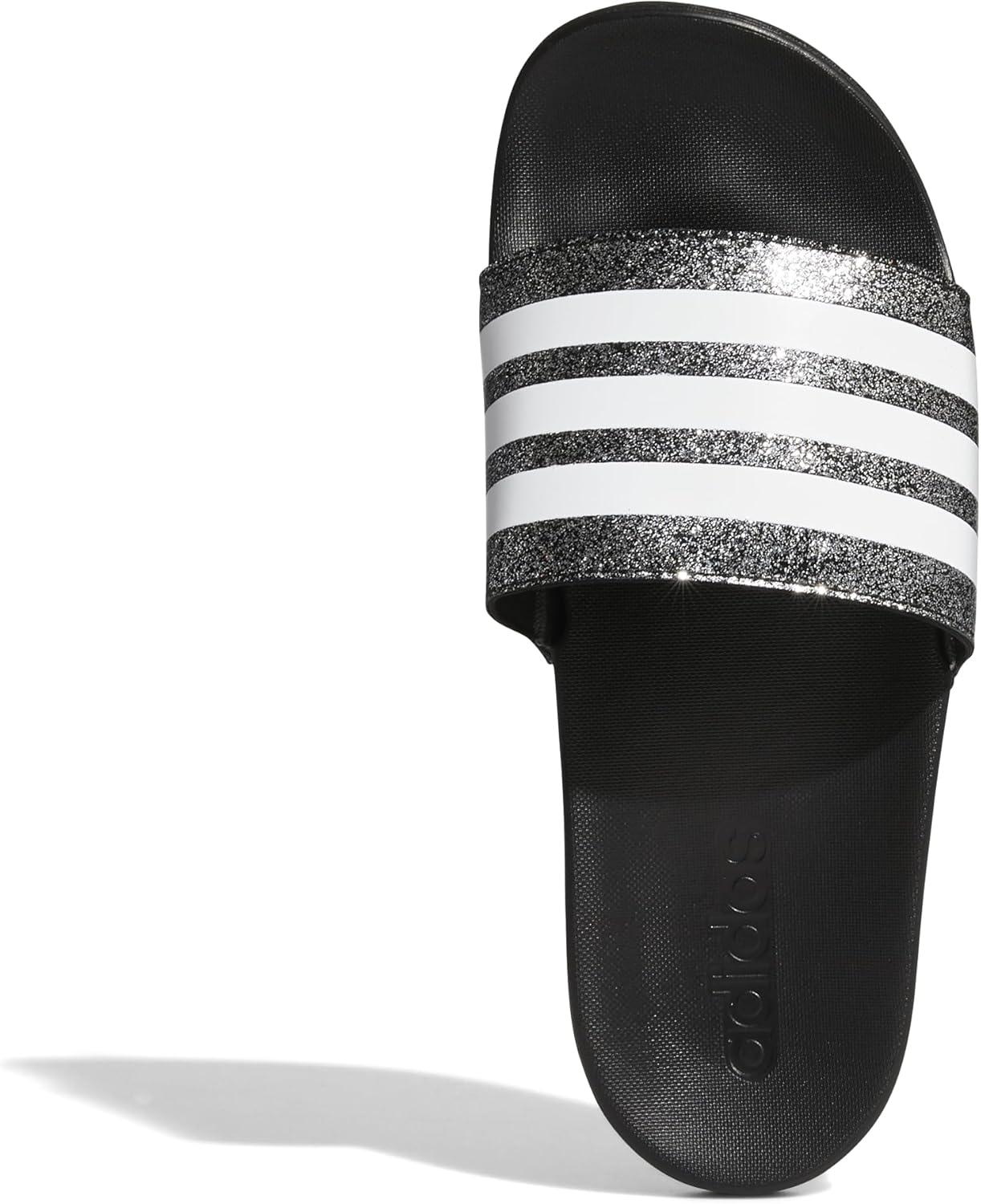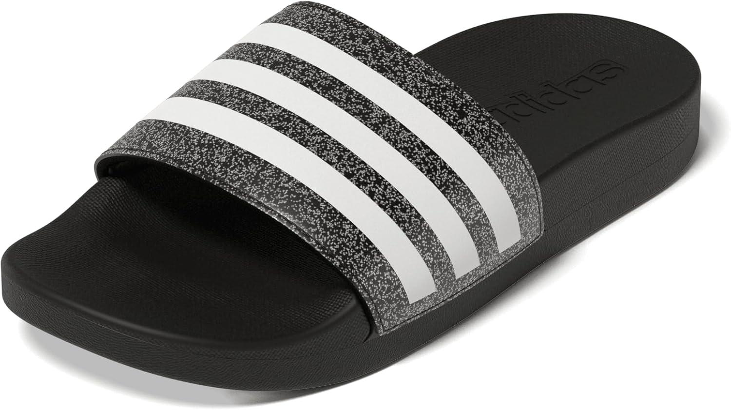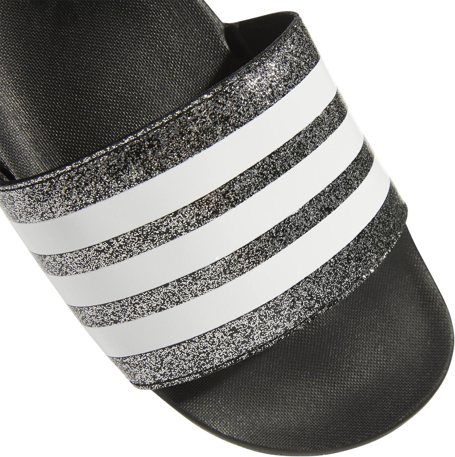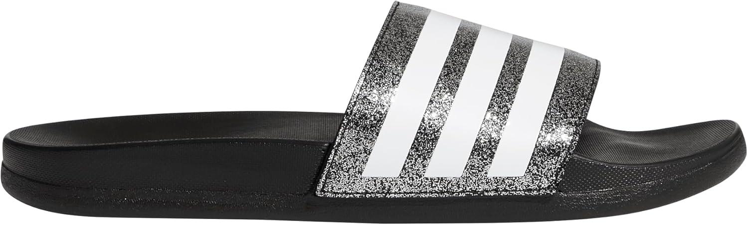adidas Boys’ Adilette Comfort Slides(Core Black/White/Core Black)