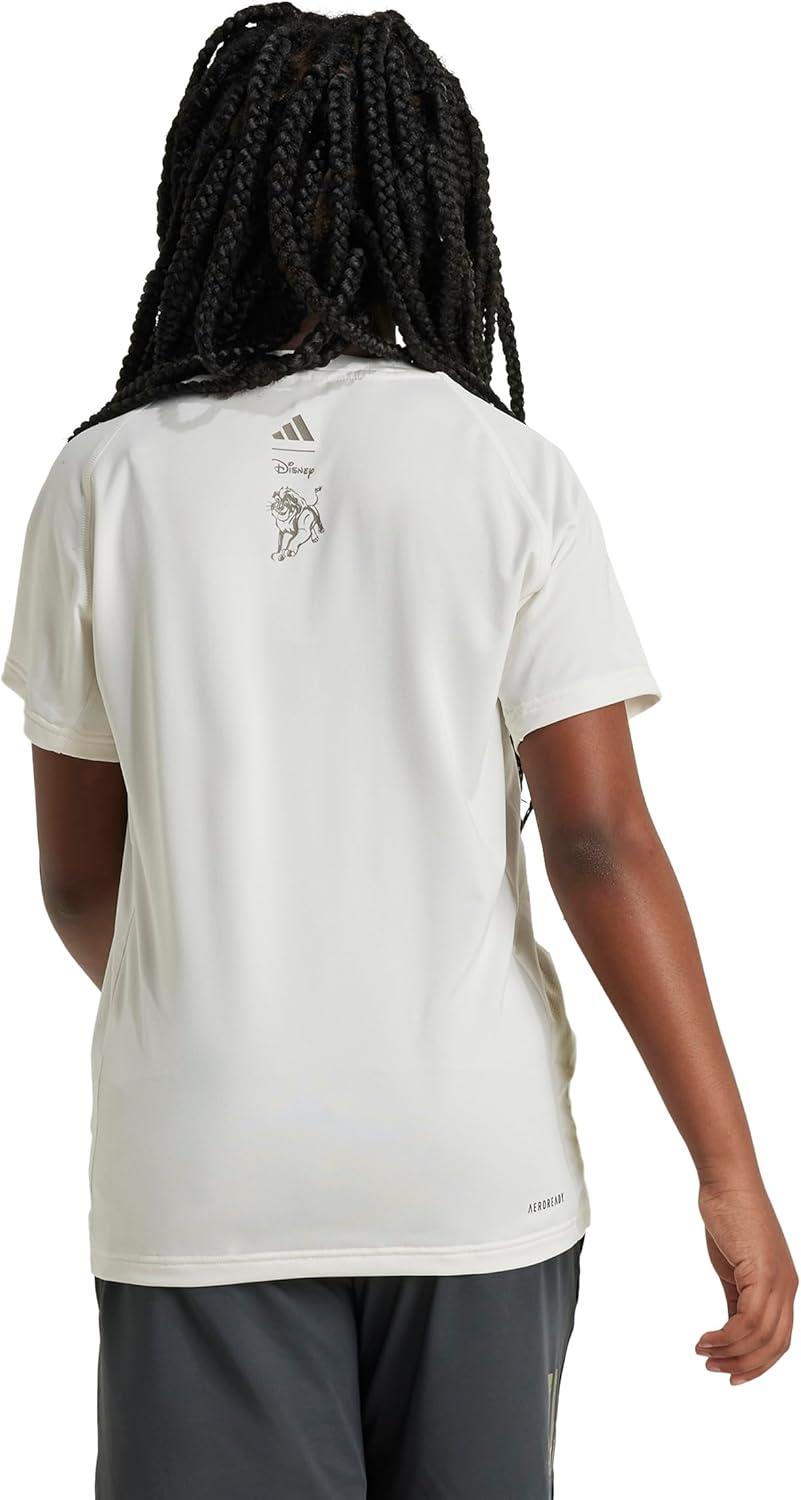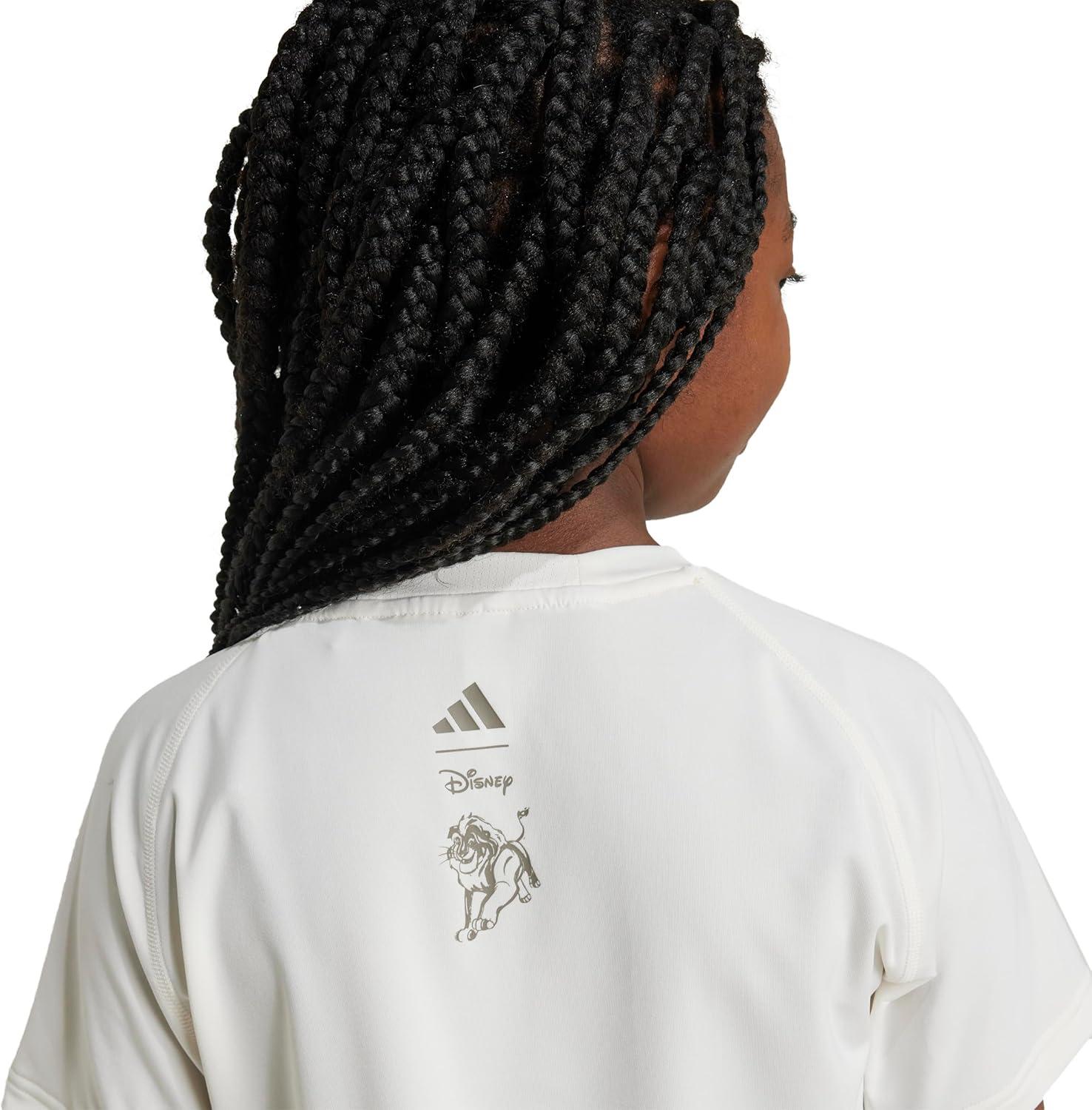 Celebrate your favorite sport brand and 30 years of adventure with Disney's Simba. The playful, earthy print on this juniors' adidas t-shirt has the look of the Pride Lands. The lightweight, stretchy fabric lets you roam free, while AEROREADY manages moisture to keep you dry and comfortable.