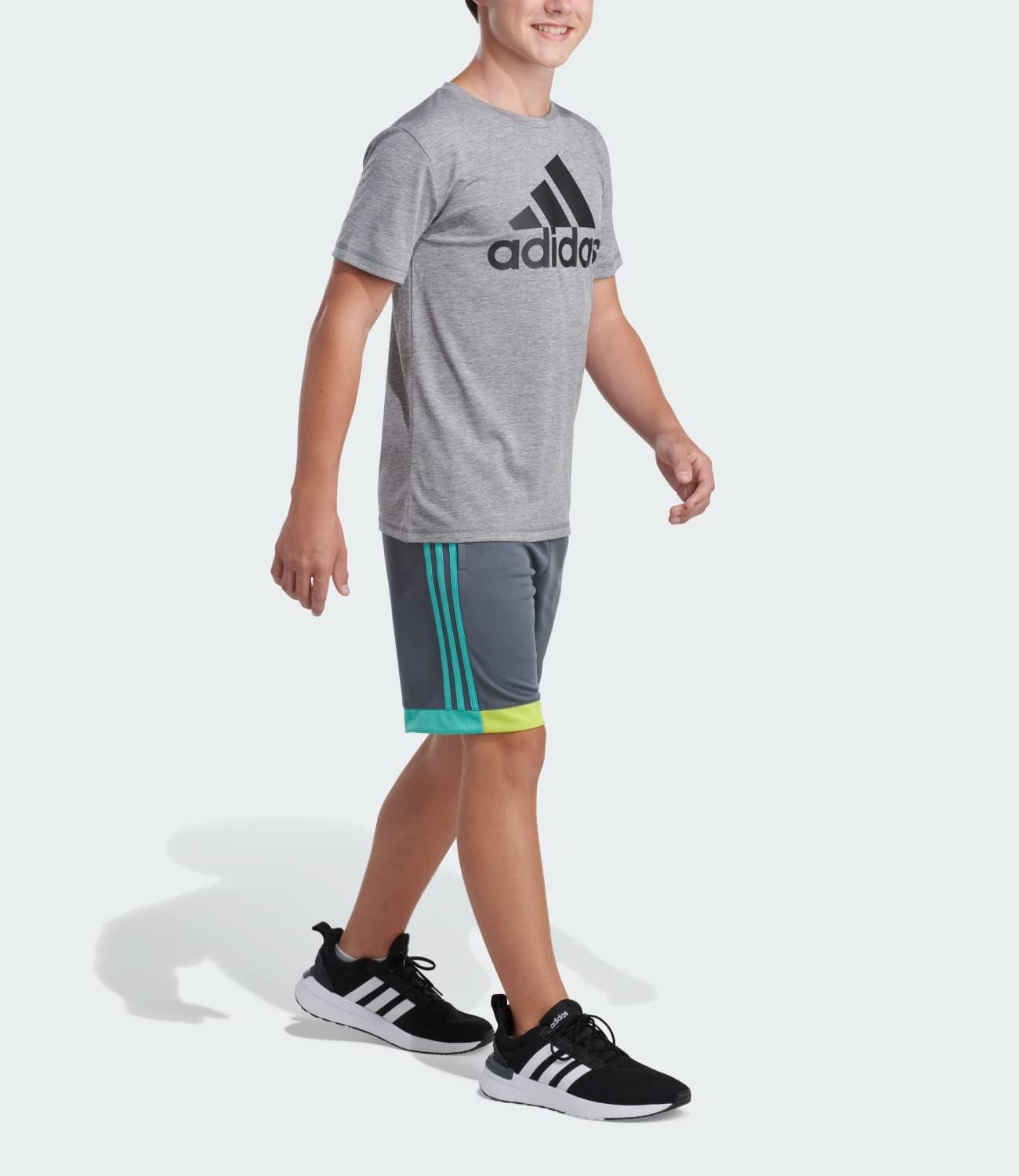 adidas Boys’ Elastic Waistband Winner Short(Grey/Green)
