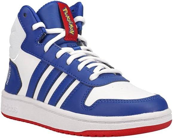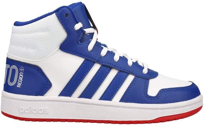 adidas Boys’ Hoops 2.0 Mid Ankle Basketball Shoe(White/Royal Blue/Black)
