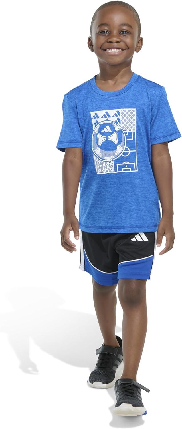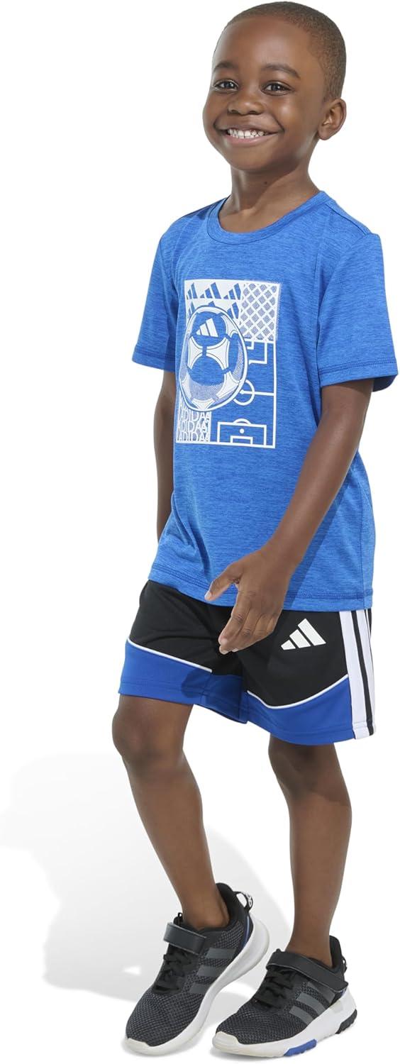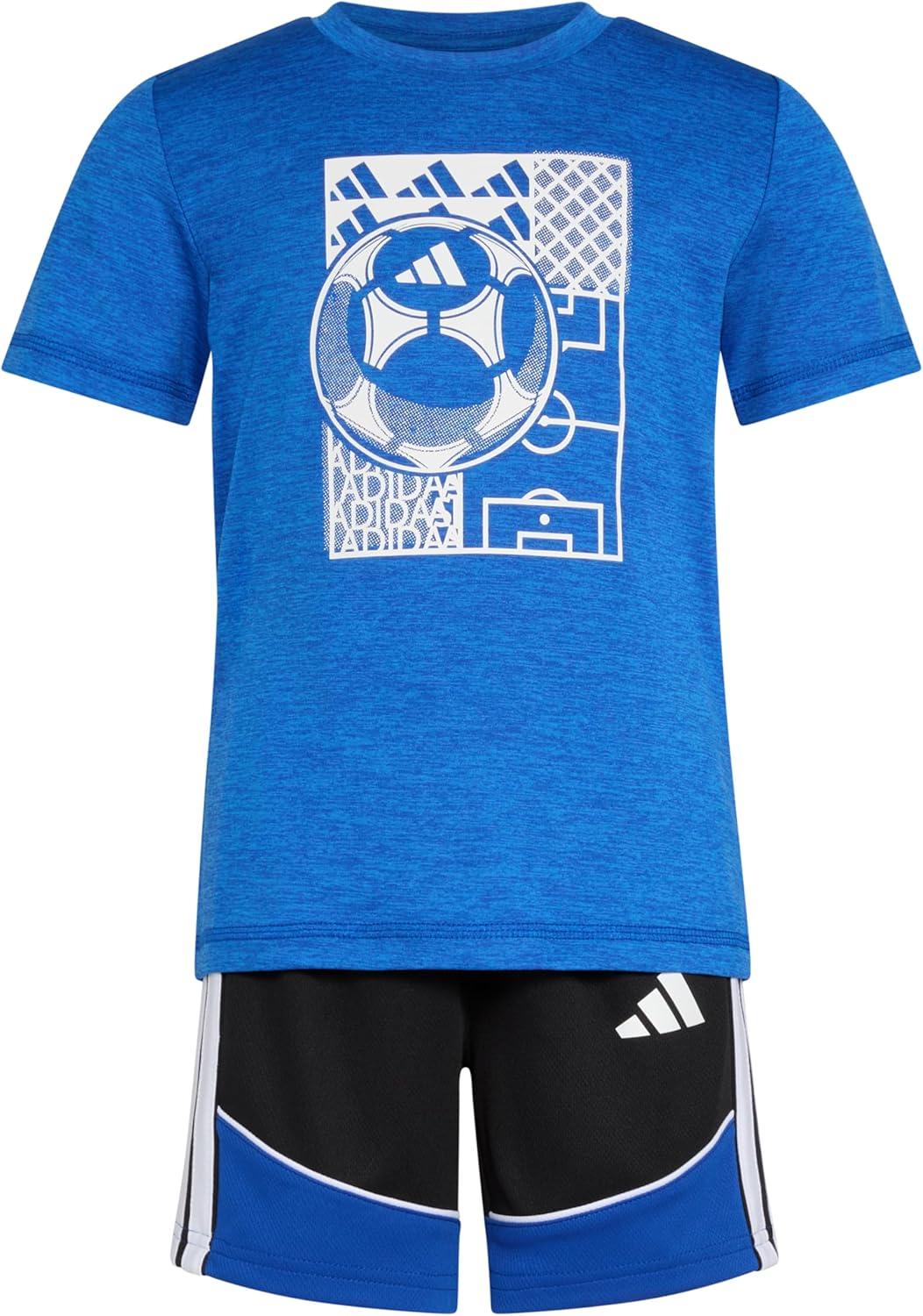 adidas boys Short Sleeve Melange Tee Shirt and Colorblock 3-stripe Short Set(Team Royal Blue)