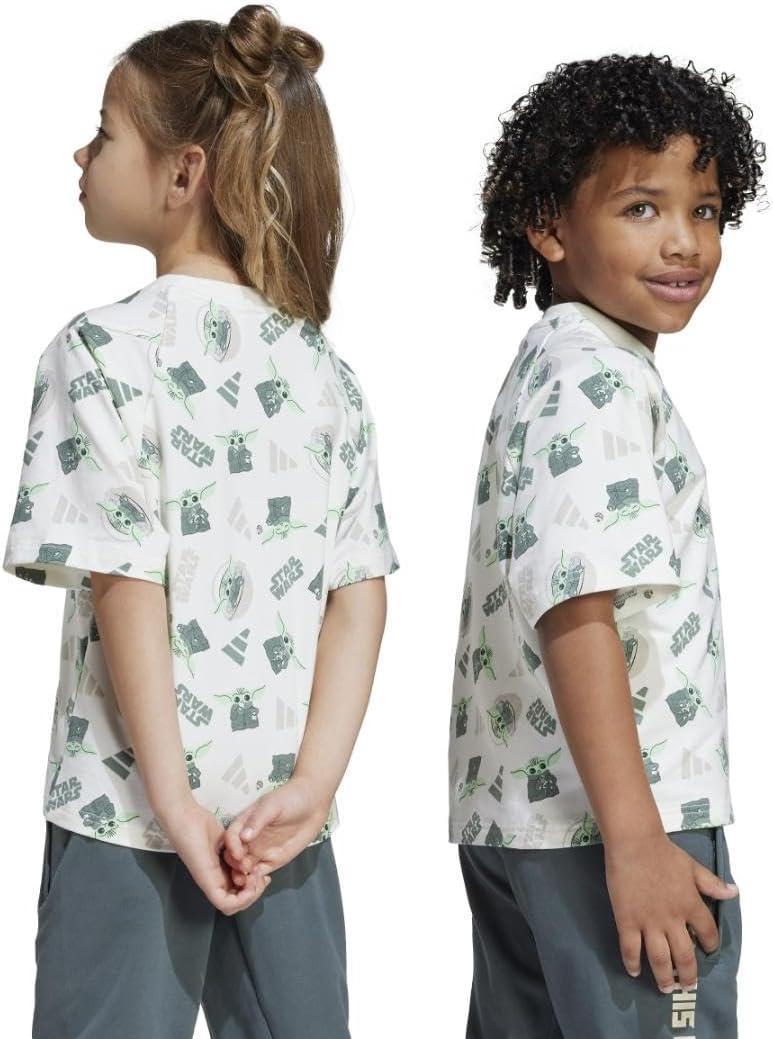 Young Star Wars™ fans can show their love for The Mandalorian™ in this kids' t-shirt from adidas. An out-of-this-world allover print featuring Grogu, the 3 Bar Logo and Star Wars graphics makes their allegiance clear. Soft, stretchy and cut for a loose fit, it's made for comfort and style.