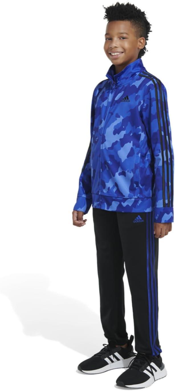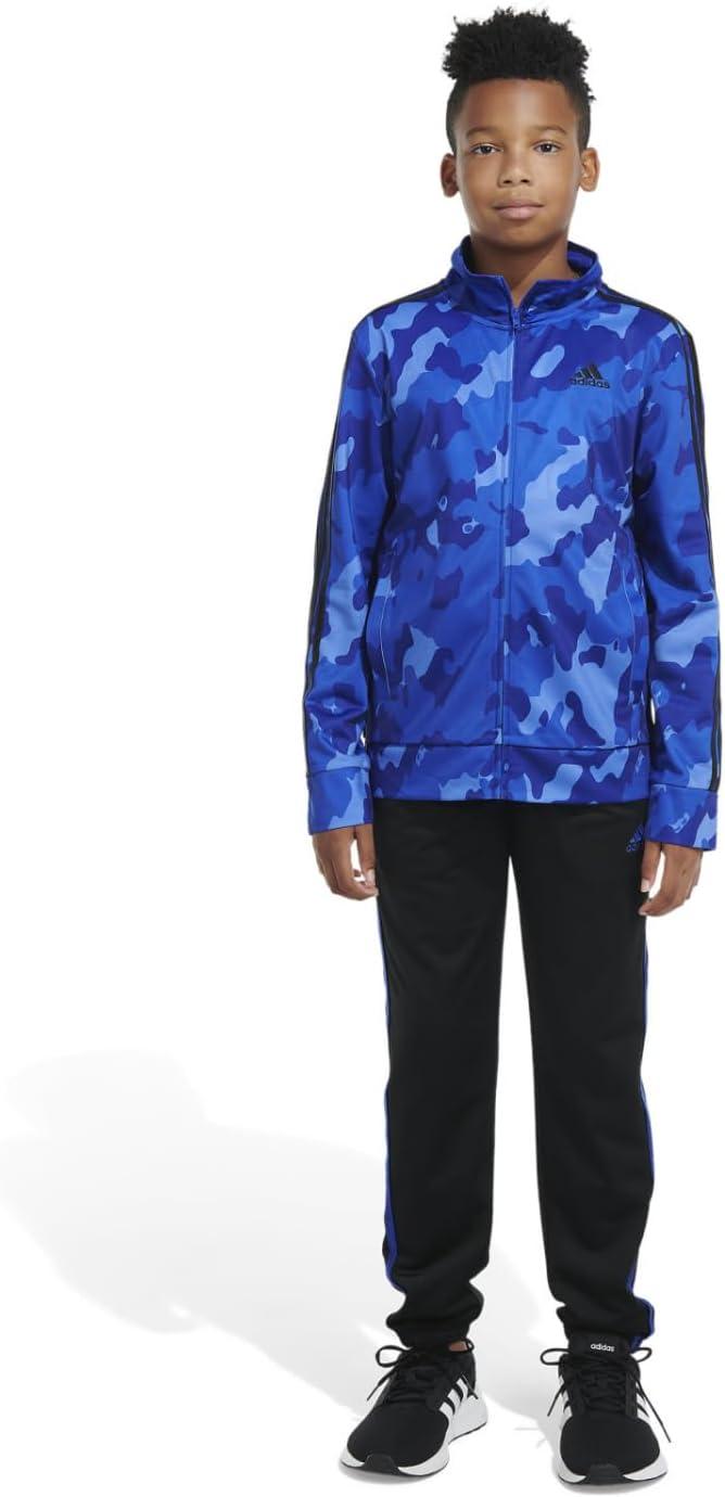 adidas boys Tricot Tracksuit Jacket Jogger Pant Set(Semi Lucid Blue Camo)