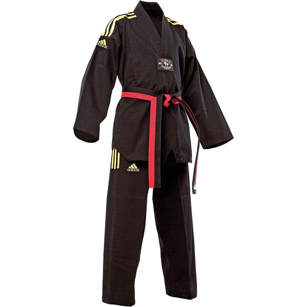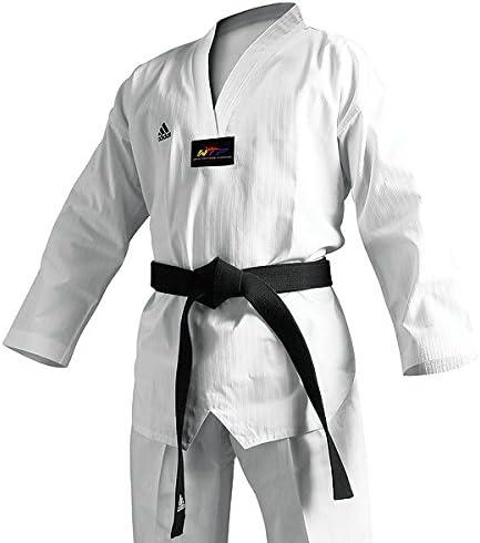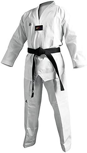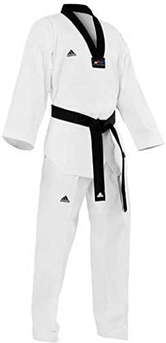 The Adidas Champion Uniform is perfect for all levels of students of Taekwondo. This uniform features a V-neck jacket too keep you cool during tough workouts or competitions. It features a special fabric with a woven structure design and for comfort and style. The pants include an elastic waistband with drawstring for extra comfort and mobility. Made of a polycotton blend, this uniform is tough enough for the most intense training and competition. A D I D A S Uniform Size Height Weight 000(120) 4' 40 Lbs 00(130) 4'4″ 60 Lbs 0(140) 4'6″ 85 Lbs 1(150) 4'9″ 100 Lbs 2(160) 5'2″ 125 Lbs 3(170) 5'6″ 150 Lbs 4(180) 5'11″ 185 Lbs 5(190) 6'1″ 210 Lbs 6(200) 6'4″ 250 Lbs 7(210) 6'8″ 280 Lbs