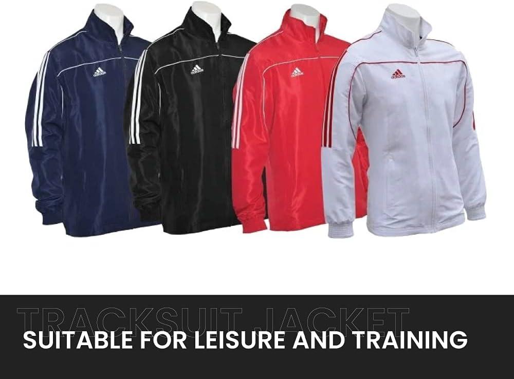 Relax in style. Zip this adidas jacket for men after a workout or when you go out with friends. The 3 stripes along the sleeves make a sporty statement. Put some money in the front pockets so it's there for a surprise at the end of a long day.