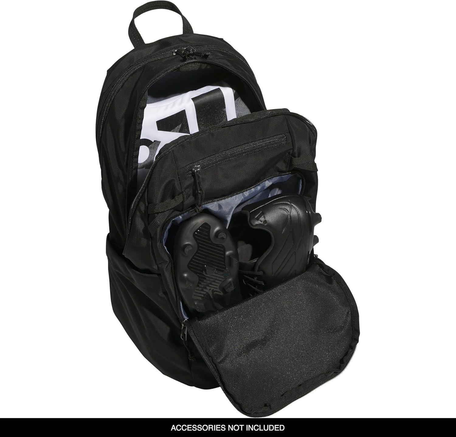 adidas Defender 5 Team Sports Backpack (33L) Durable Large Athletic Gym Laptop Travel Bag, Power Red/White, One Size(Black/Black + Black/Silver Metallic)