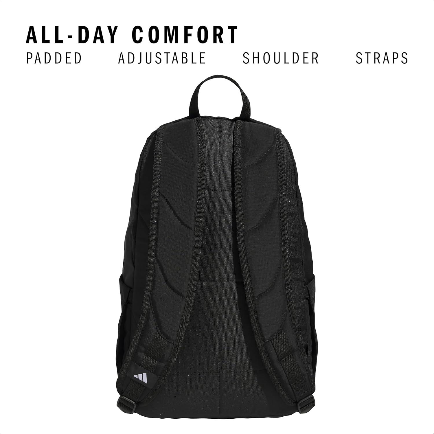 adidas Defender 5 Team Sports Backpack (33L) Durable Large Athletic Gym Laptop Travel Bag, Power Red/White, One Size(Black/White)