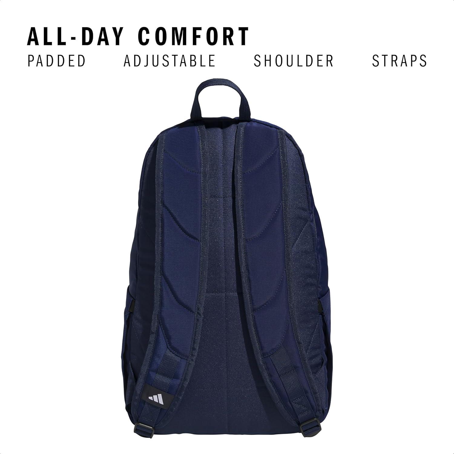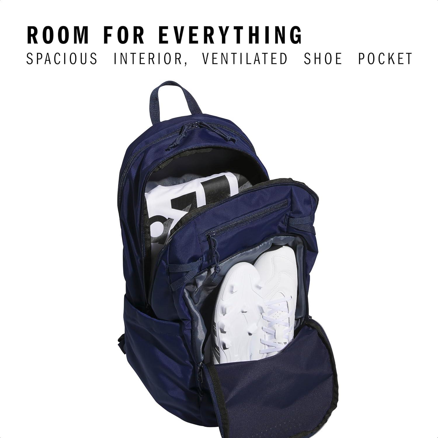 adidas Defender 5 Team Sports Backpack (33L) Durable Large Athletic Gym Laptop Travel Bag, Power Red/White, One Size(Navy Blue)