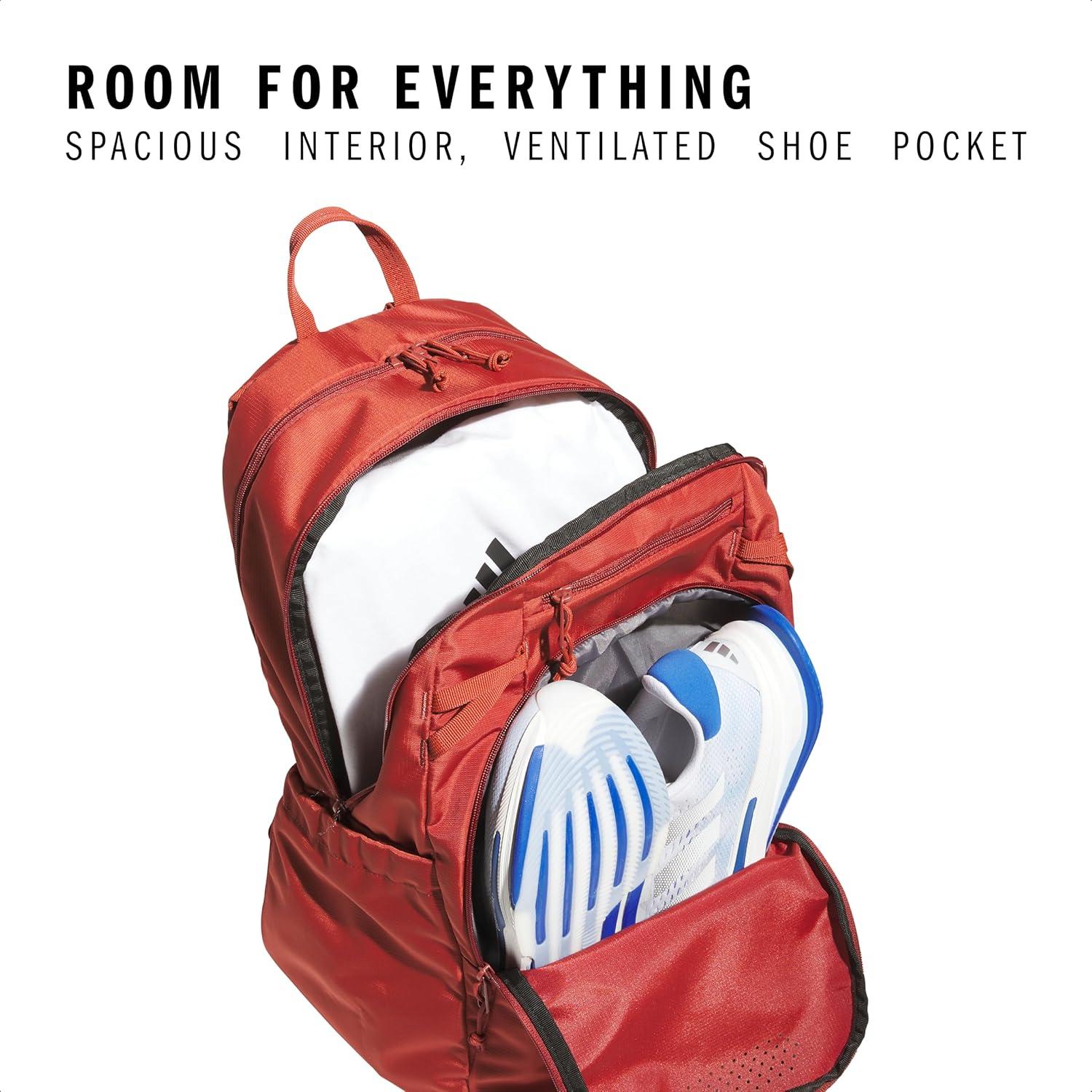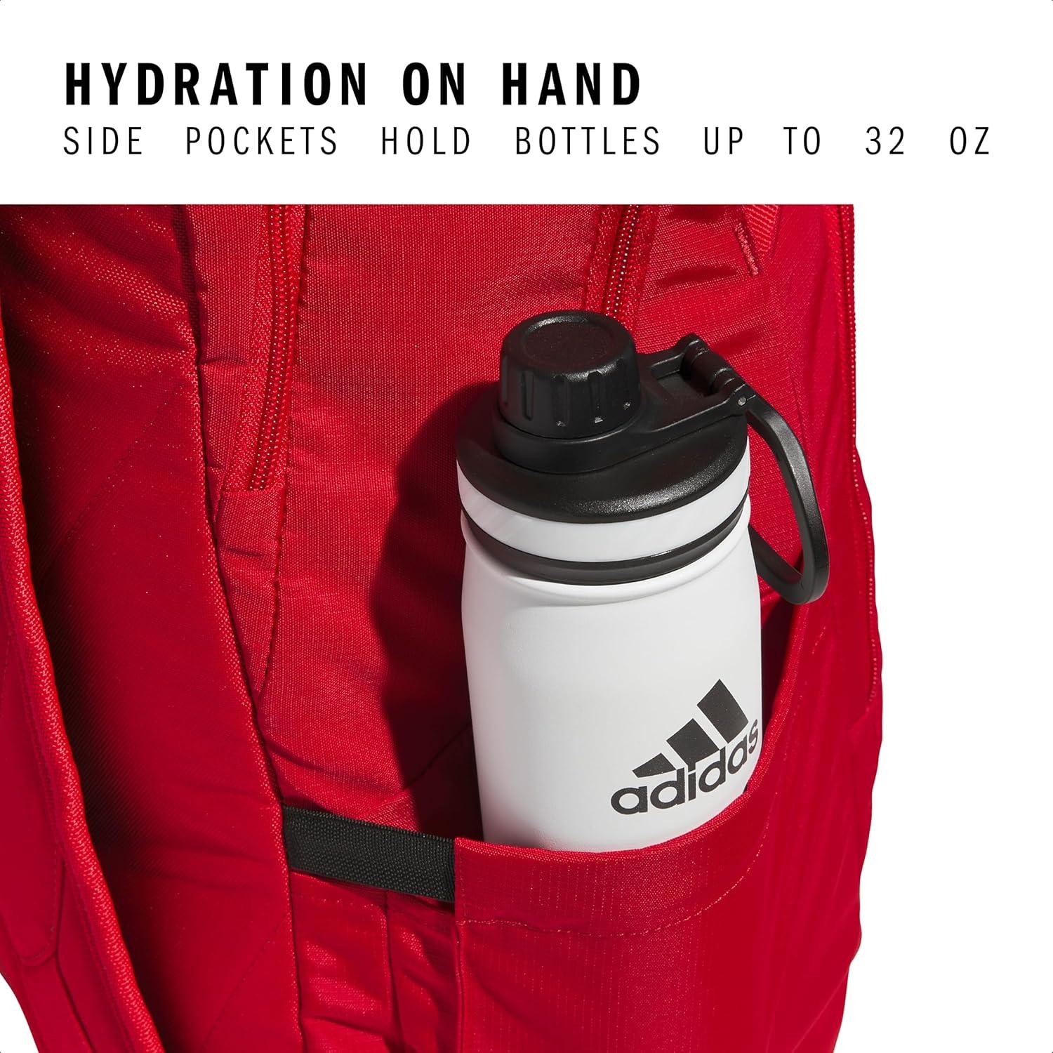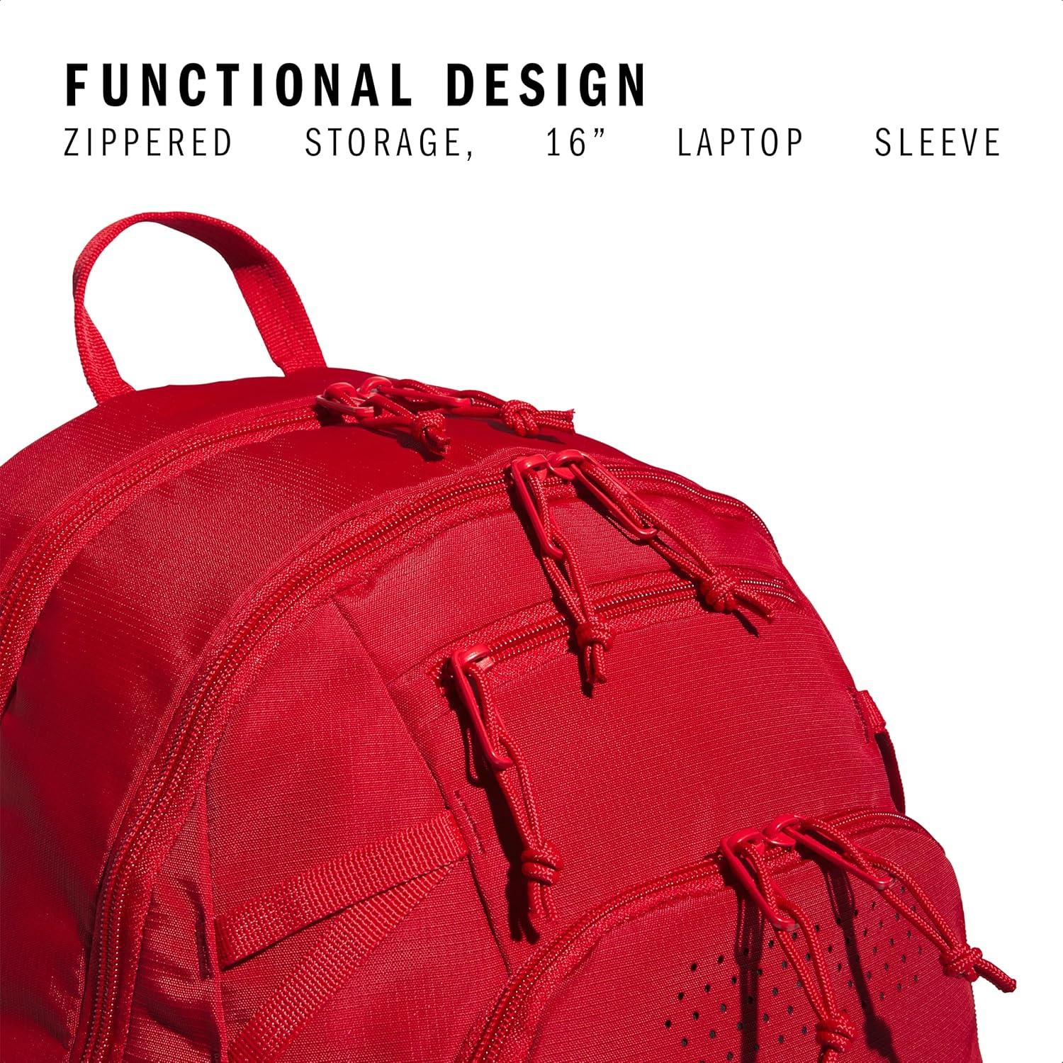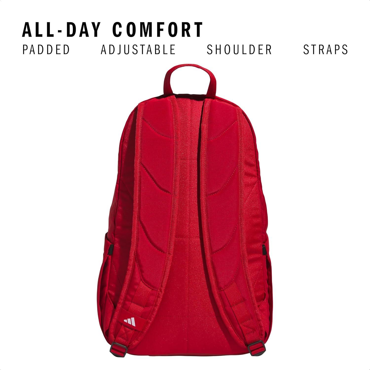 adidas Defender 5 Team Sports Backpack (33L) Durable Large Athletic Gym Laptop Travel Bag, Power Red/White, One Size(Power Red/White)
