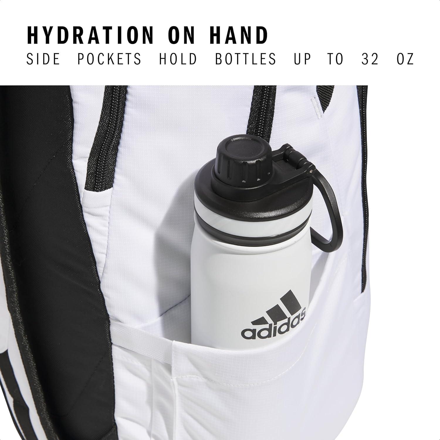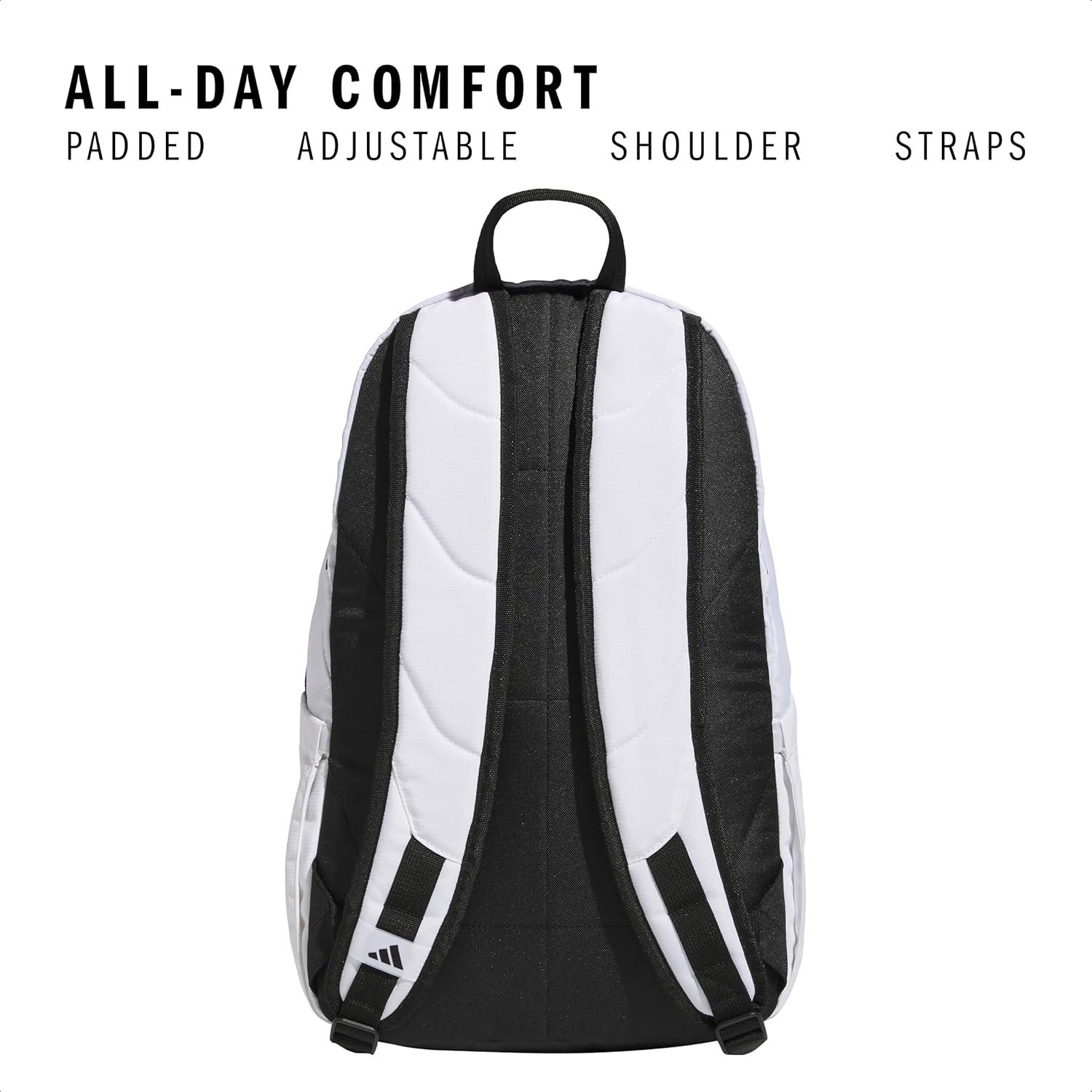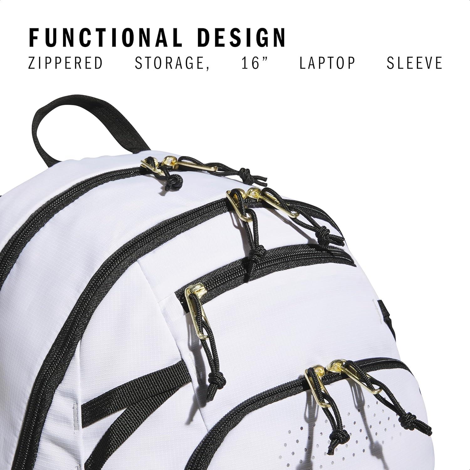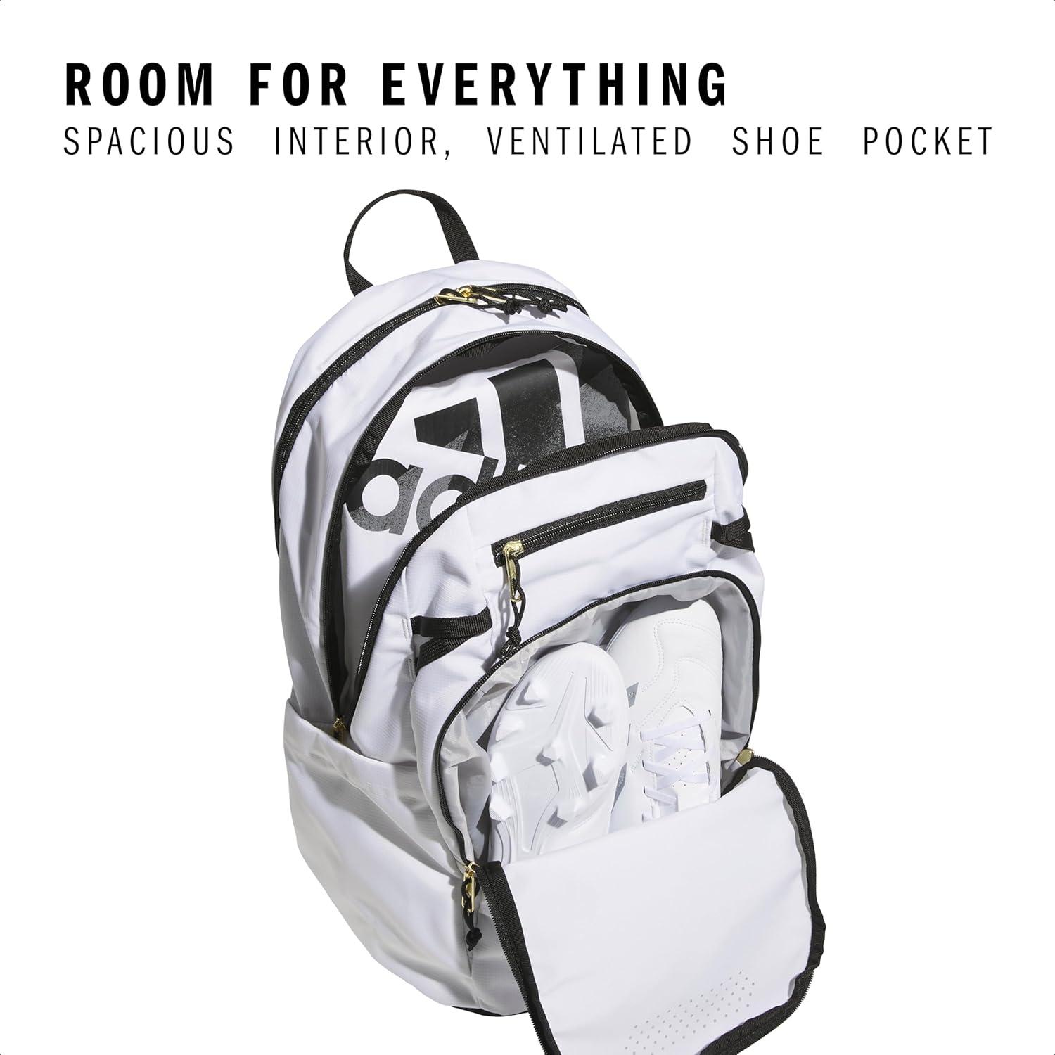 adidas Defender 5 Team Sports Backpack (33L) Durable Large Athletic Gym Laptop Travel Bag, Power Red/White, One Size(White/Gold Metallic/Black)
